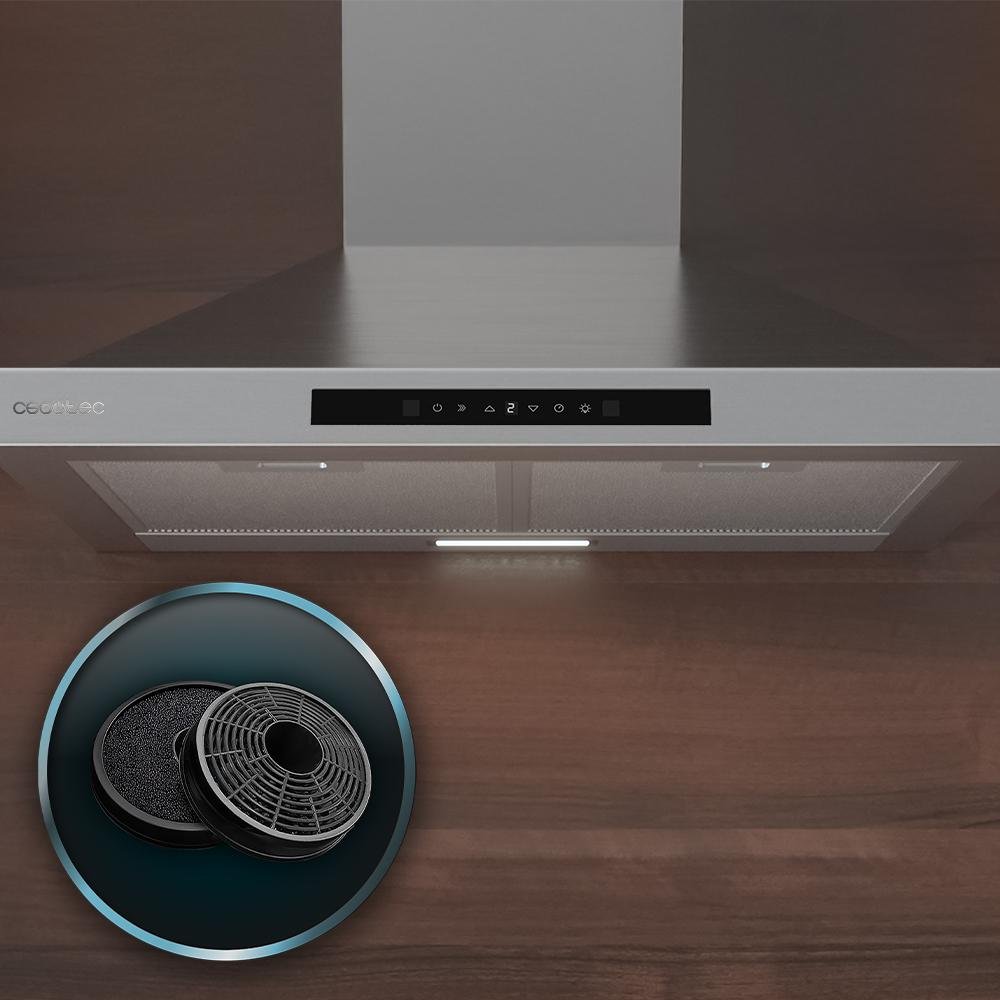 Su diseño incluye dos filtros de carbono de Ø176, ideales para eliminar tanto los malos olores como el humo
