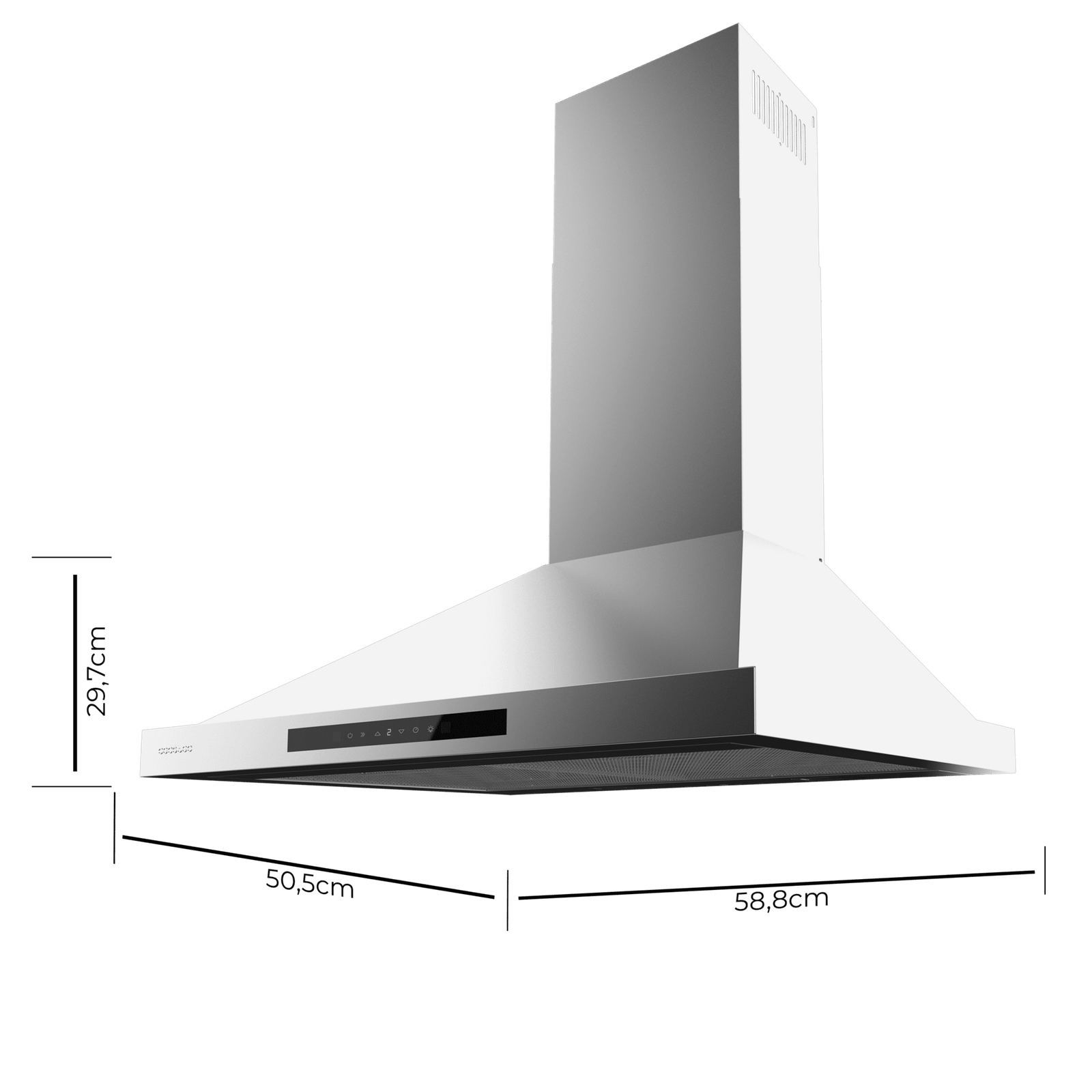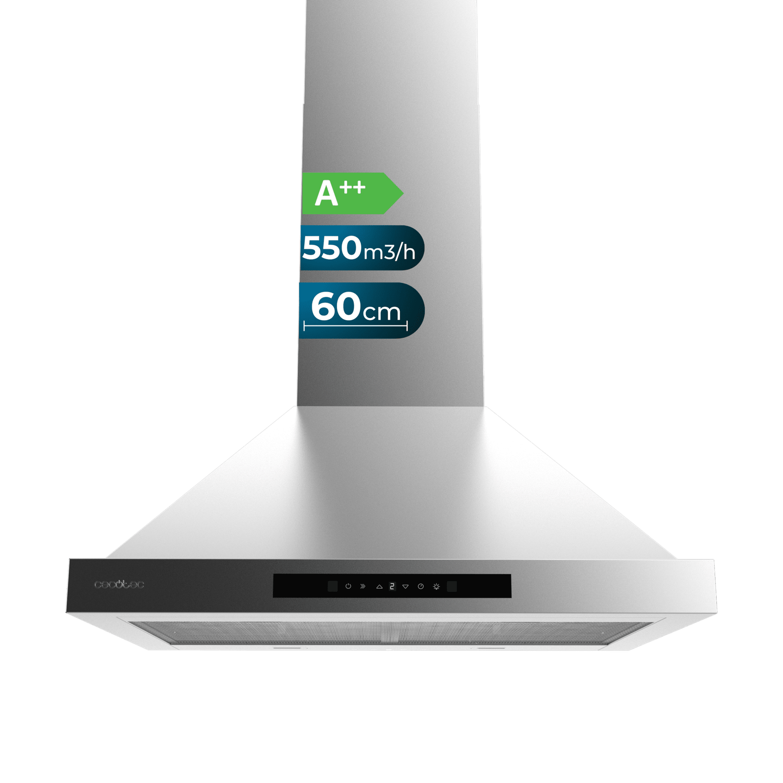 - Gran ancho de campana: la campana extractora tiene un ancho de 60 cm, tamaño ideal para un funcionamiento óptimo.