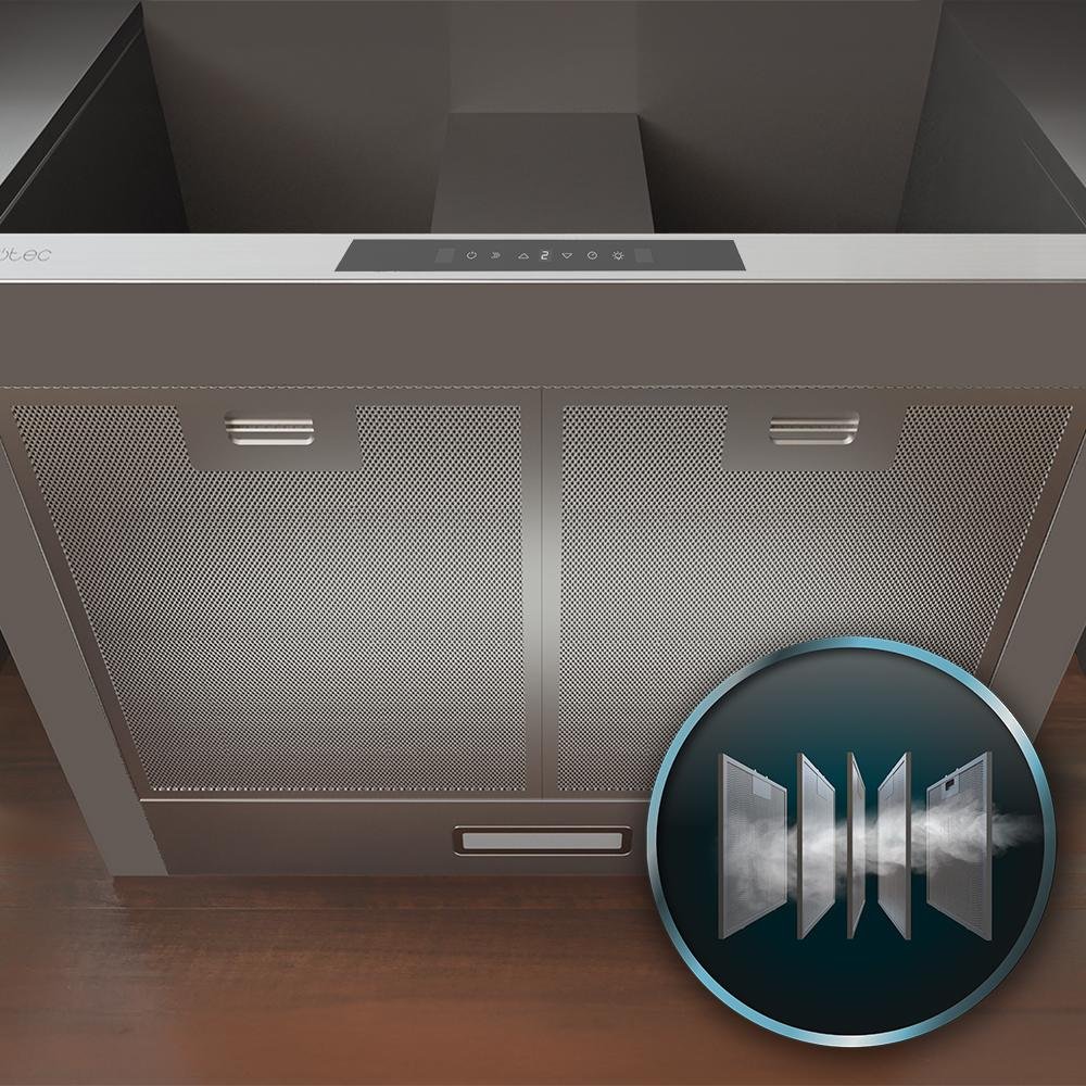 - Protégete de la grasa: la campana extractora contiene un filtro de grasa de aluminio de 5 capas.
