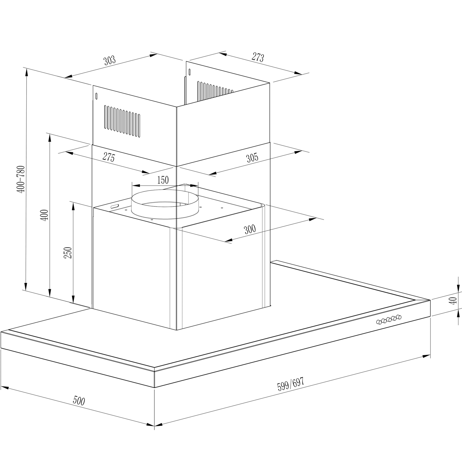 - Control mecánico: selecciona manualmente entre las diferentes funciones que ofrece la campana extractora, de manera fácil e intuitiva.
