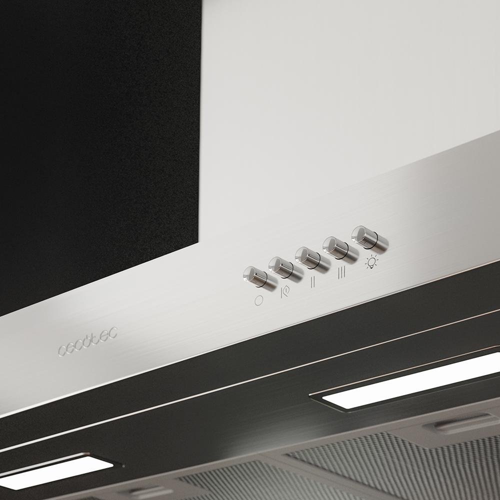- Control mecánico: selecciona manualmente entre las diferentes funciones que ofrece la campana extractora, de manera fácil e intuitiva.