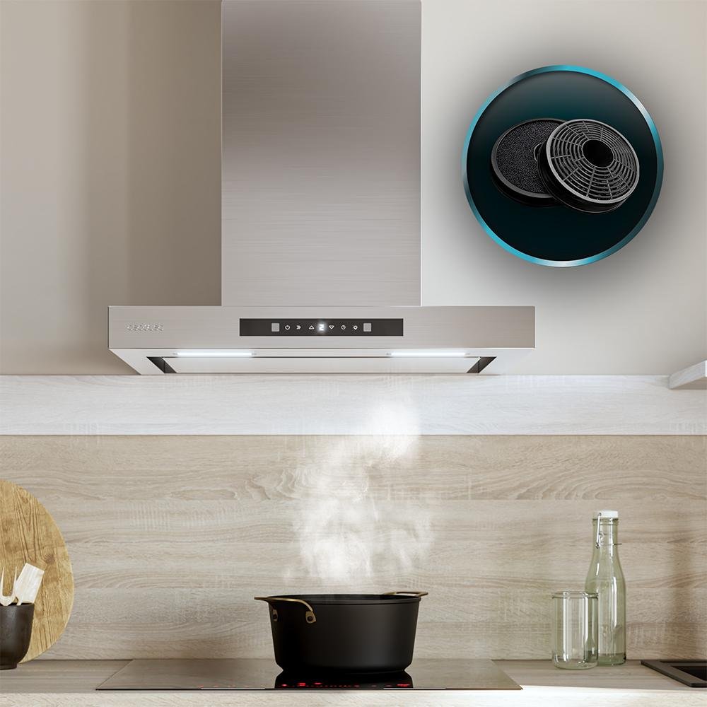 Nuestra campana viene equipada con lo mejor de lo mejor. Dispone de dos filtros de carbono de Ø176, ideales para eliminar los malos olores, y de un filtro de grasa de aluminio de 5 capas que hará que tu cocina esté siempre limpia.