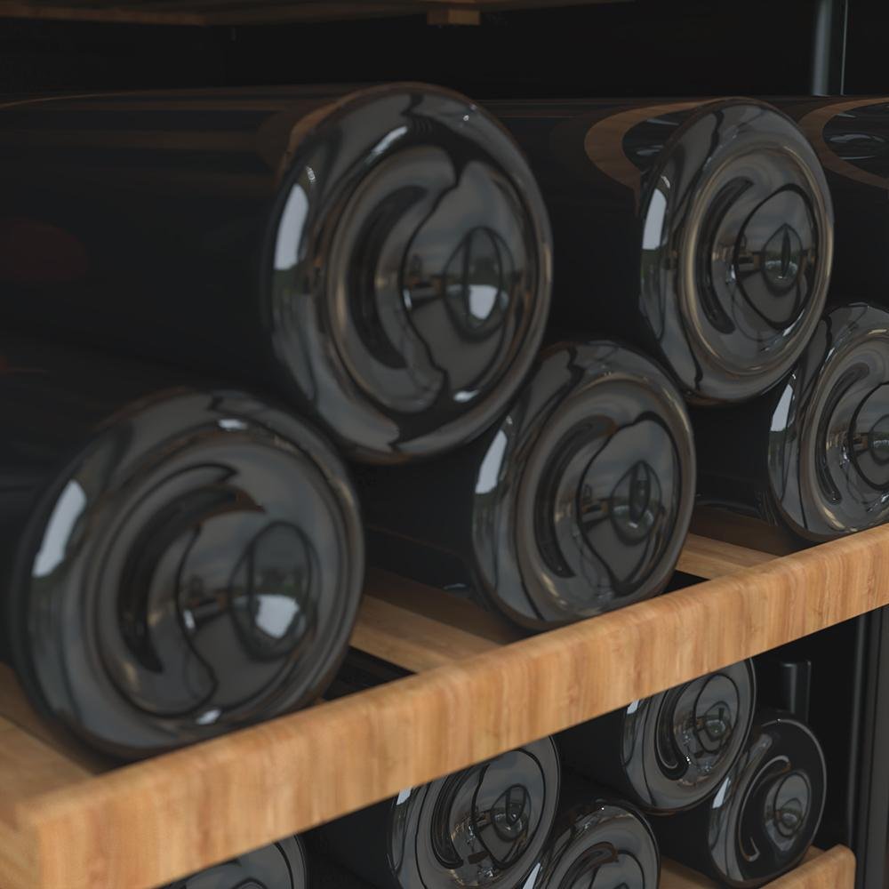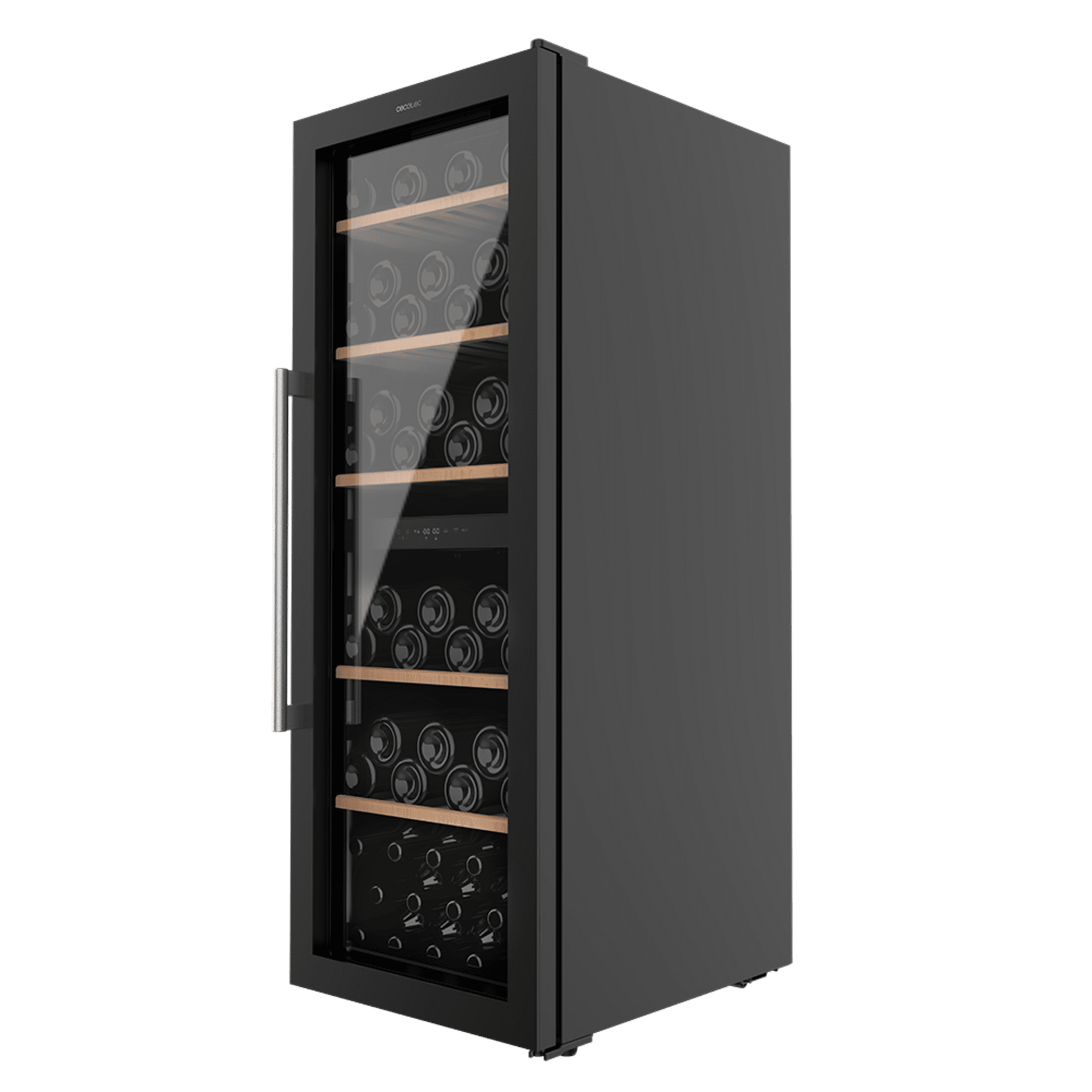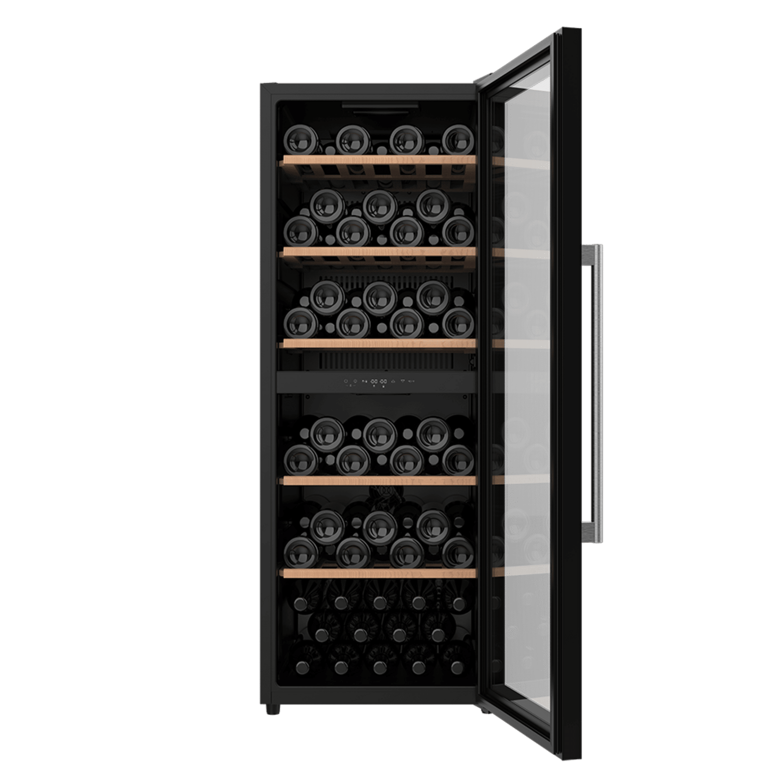 Bolero GrandSommelier Duo 77000 Black Vinoteca de 77 botellas de capacidad con sistema compresor de enfriamiento que garantiza un alto rendimiento, ofreciendo una doble zona, tanto para vino tinto, como blanco o champagne. Temperatura regulable y luz LED interior.