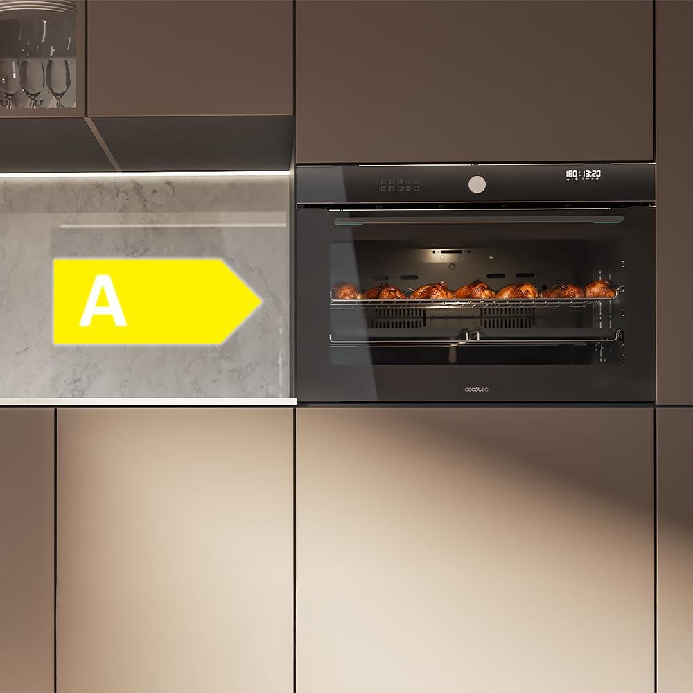 Ahorra¹ en cada uso y reduce el consumo energético sin restar eficacia durante la cocción de tus recetas gracias a su etiqueta energética Clase A. Súmate a la cocina saludable y eficiente.¹De acuerdo con la clase de eficiencia energética A obtenida según la normativa de etiquetado energético.