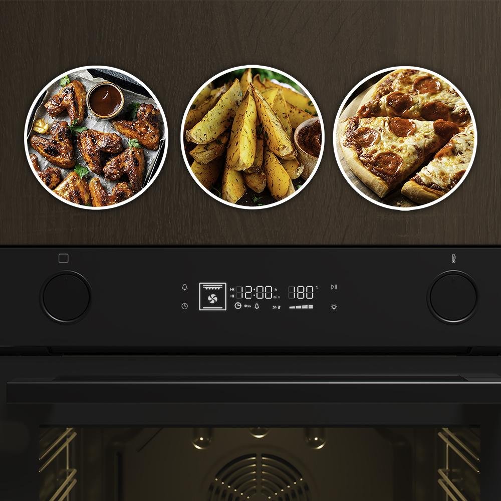Bolero Hexa AF326000 Glass Black A Horno Integrable Multifunción Airfryer AF326000 Glass Black de 73L de capacidad, 12 funciones, Clase A, 2800W, Steam Base XXL, Steam Assist, Steam EasyClean, Pizza Master, Airfryer Master, Cooling Fan, Modo Eco.
