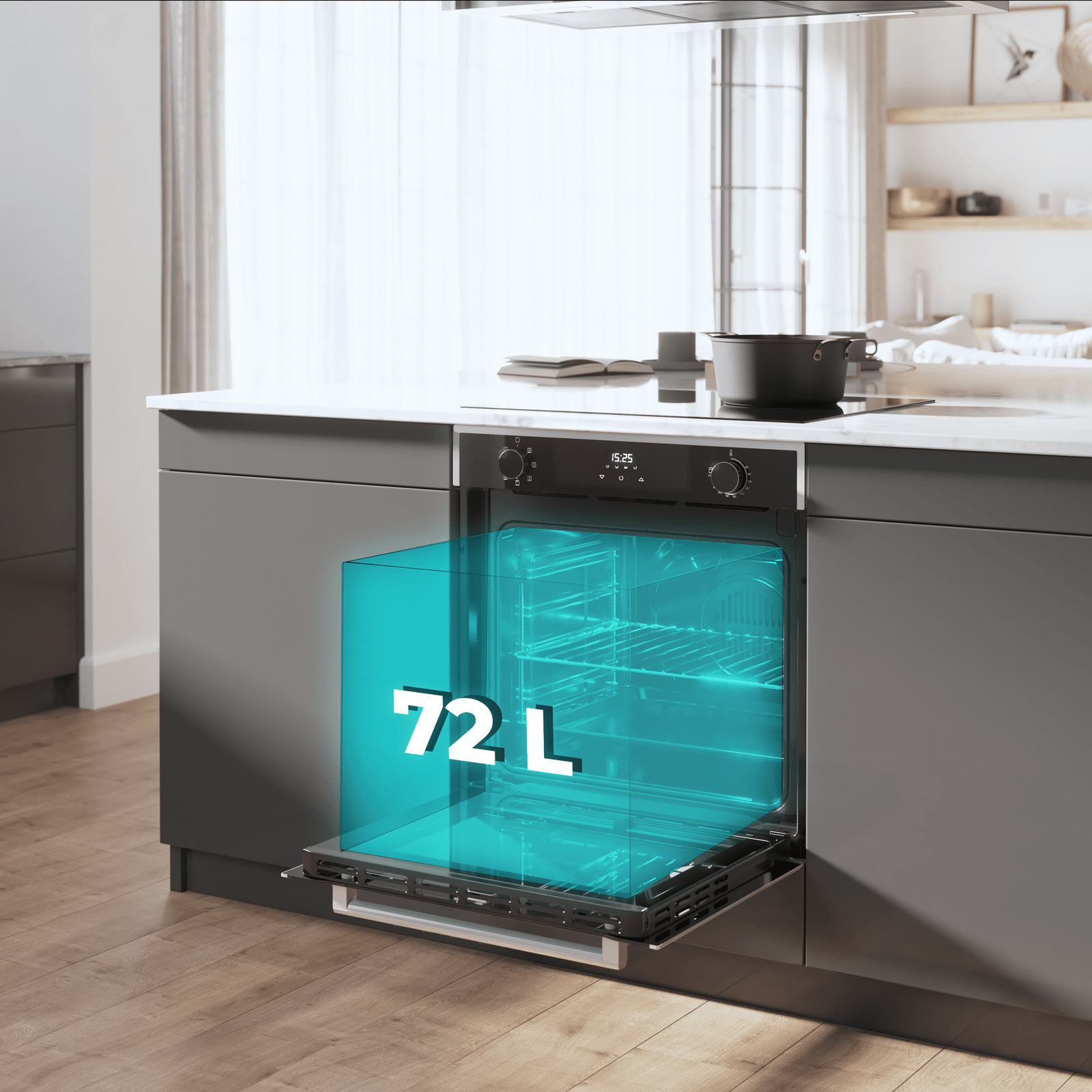 Este horno de 72 L de capacidad es ideal para cocinar recetas y elaboraciones para toda la familia. Además, sus 5 posiciones de bandeja te ofrecen un gran abanico de posibilidades a la hora de preparar tus mejores platos.