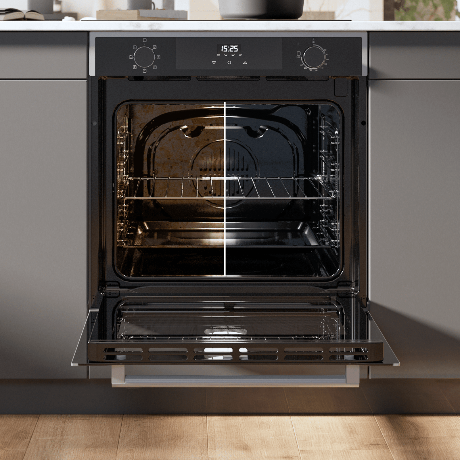 La función Steam EasyClean desincrusta la suciedad con vapor y permite limpiar sin rascar para que dejes el horno como nuevo sin esfuerzo.