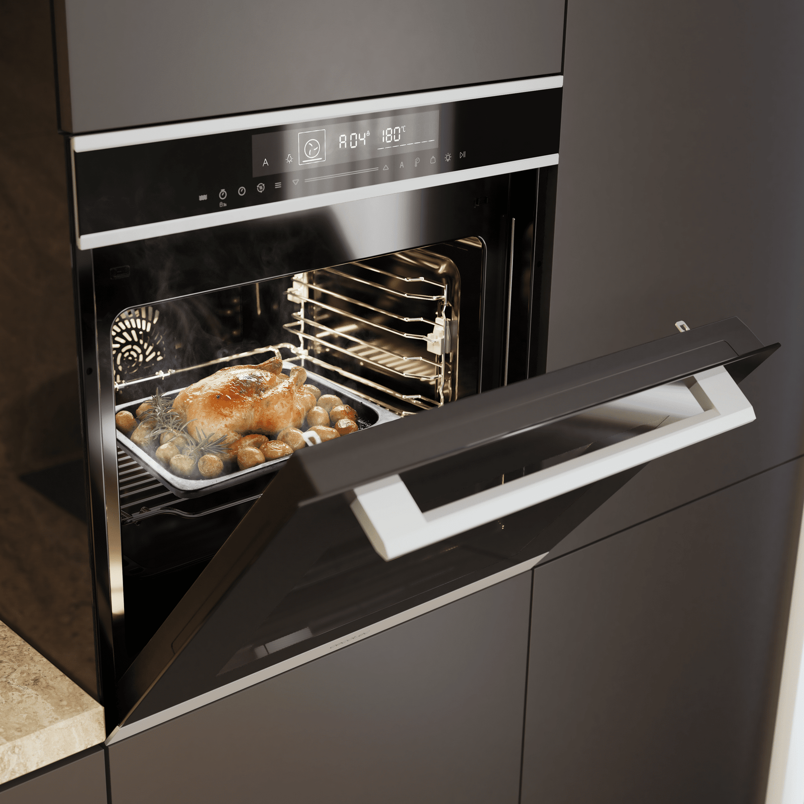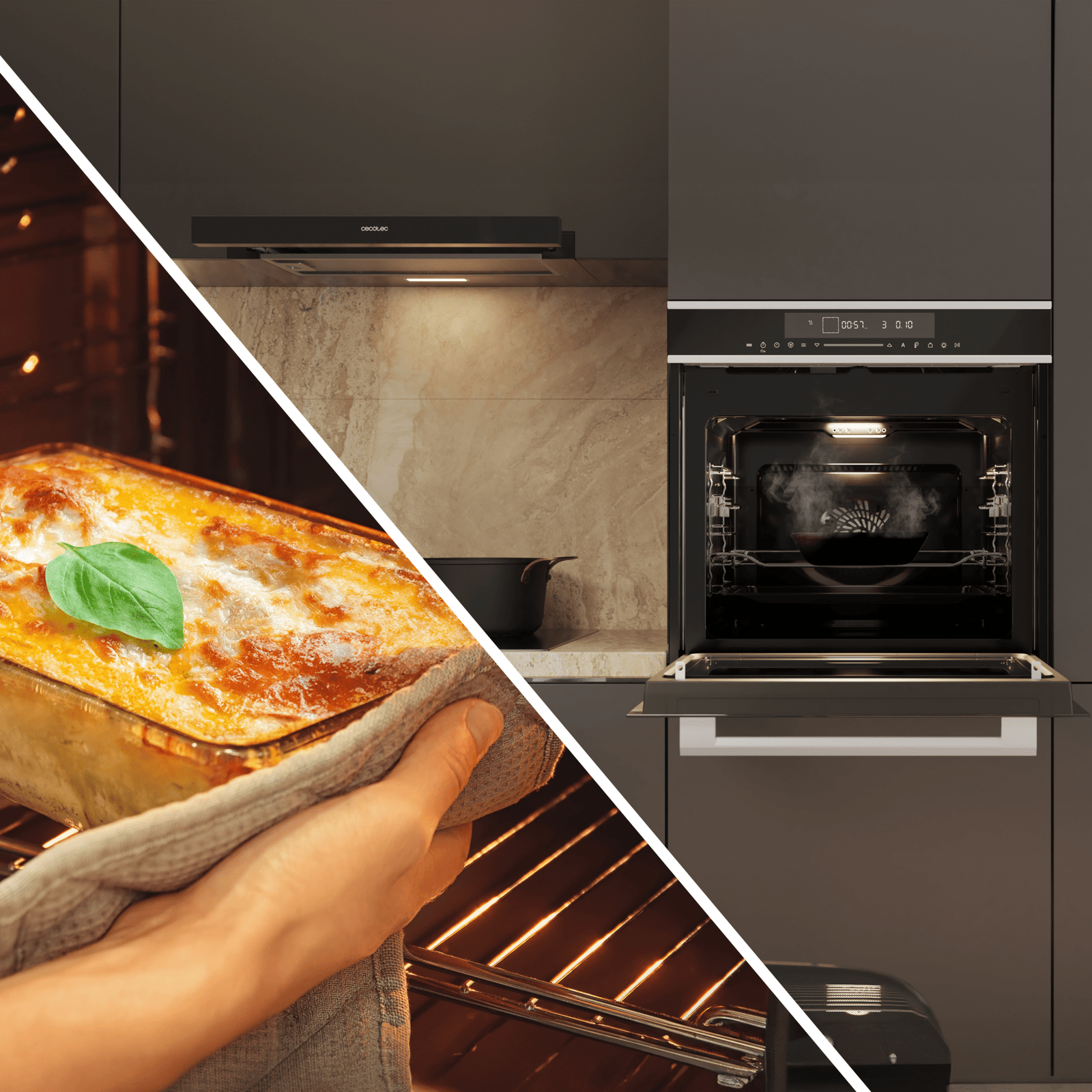 Cocina grandes recetas, menús para toda la familia o varios platos a la vez gracias a su gran capacidad con 5 posiciones de bandejas.