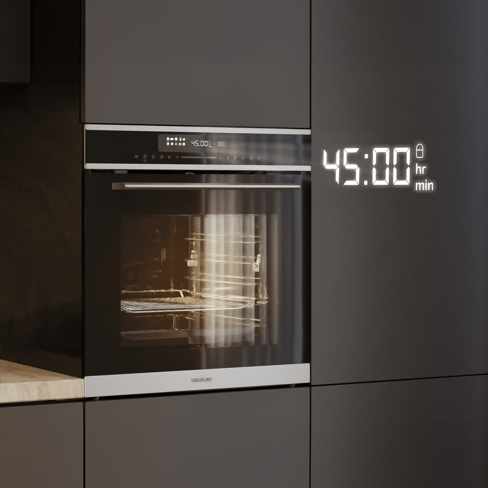 Marca el tiempo de cada elaboración y despreocúpate, el horno se apagará automáticamente una vez pase el tiempo marcado.