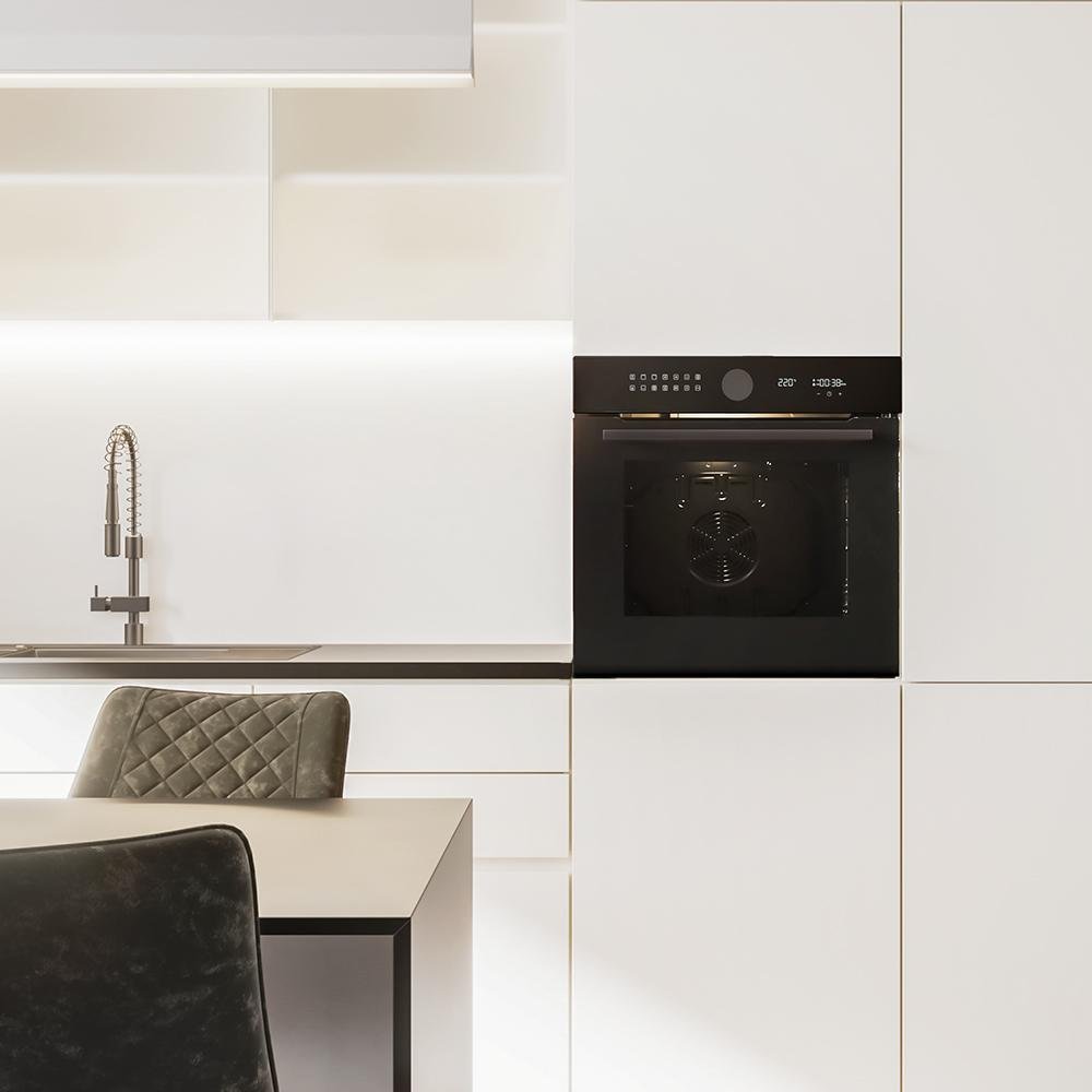 Bolero Hexa P516000 Glass Black A Horno Integrable Pirolítico P516000 Glass Black de 73L de capacidad, 14 funciones, Dual Display, Clase A, 3250W, Pirólisis, Pizza Master, Airfryer Master, Cooling Fan, Precalentamiento rápido, Modo Defrost, Modo Convección, Modo Eco, Guías telescópicas.
