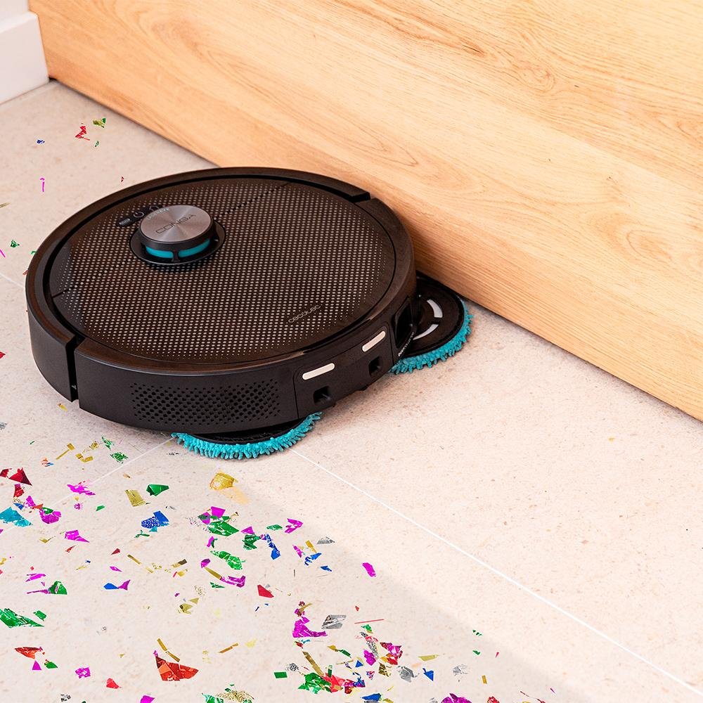 Sus mopas se elevan hasta 10 mm, permitiendo al robot evitar el contacto con alfombras o áreas donde solo se desea aspirar. Además, su mopa derecha es extensible, lo que permite al robot alcanzar bordes y limpiar eficazmente las zonas inferiores de los muebles.