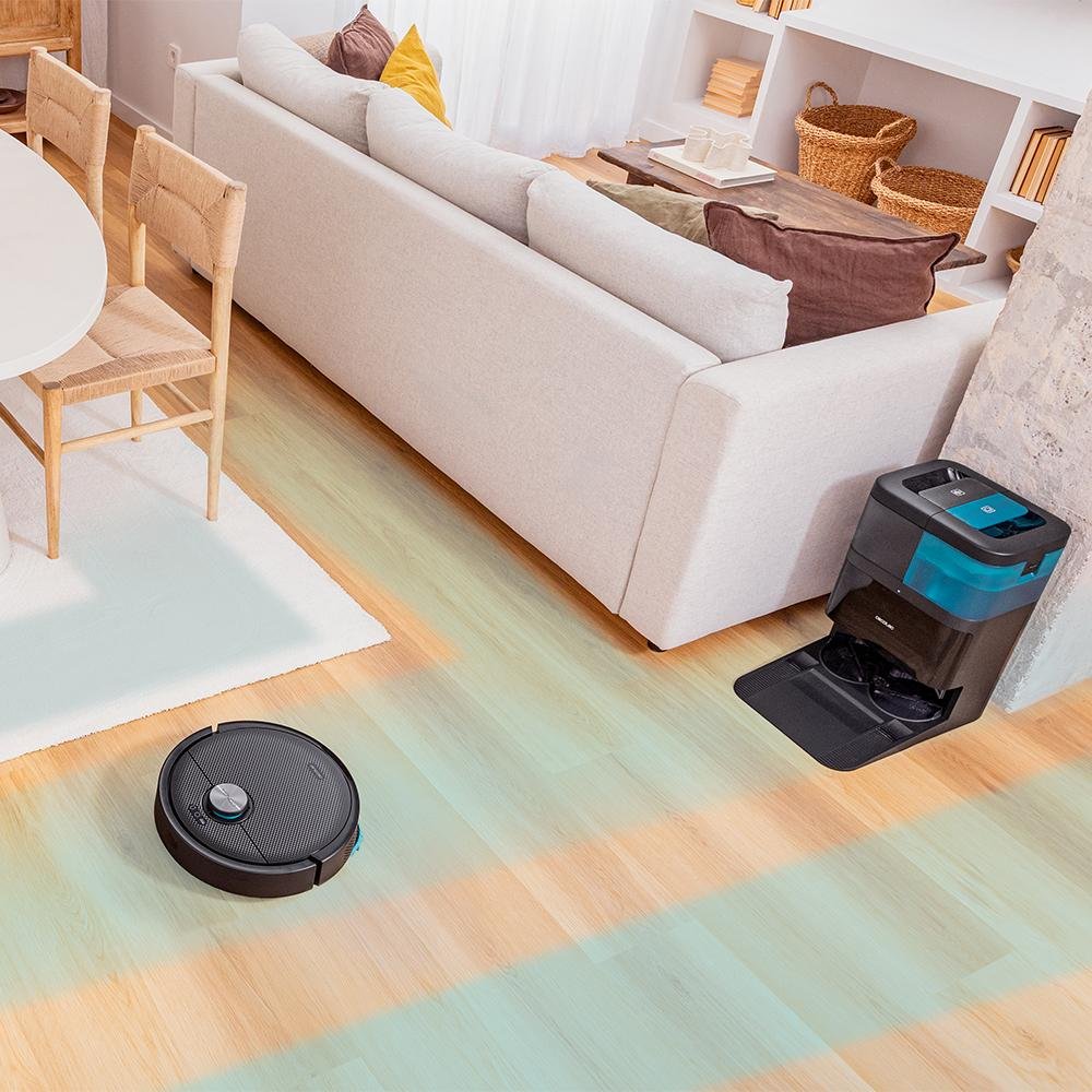La estación Home&Wash cuida y gestiona de forma autónoma el mantenimiento del robot gracias a los sistemas de autovaciado y autorrellenado que dejan al robot como nuevo para empezar cada plan de limpieza en las mejores condiciones. Además, tras la limpieza de los depósitos, la base seca las mopas para evitar la aparición de malos olores y gérmenes.