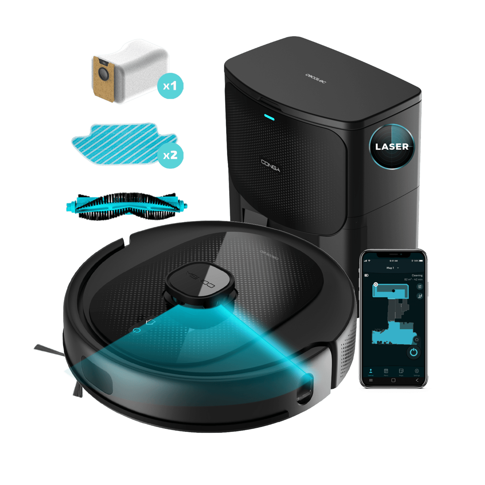 Conga 8290 Immortal Ultra Power Home X-Treme Robot aspirador con navegación láser y base de autovaciado. 4 en 1: barre, aspira, friega y pasa la mopa. Potencia de succión de 7000 Pa. 280 minutos de autonomía. Mopa de fregado y 1 cepillo lateral. 3 niveles de potencia de aspiración y de fregado. Control APP y asistentes virtuales. Detección de bolsa automática. 3 litros de capacidad.