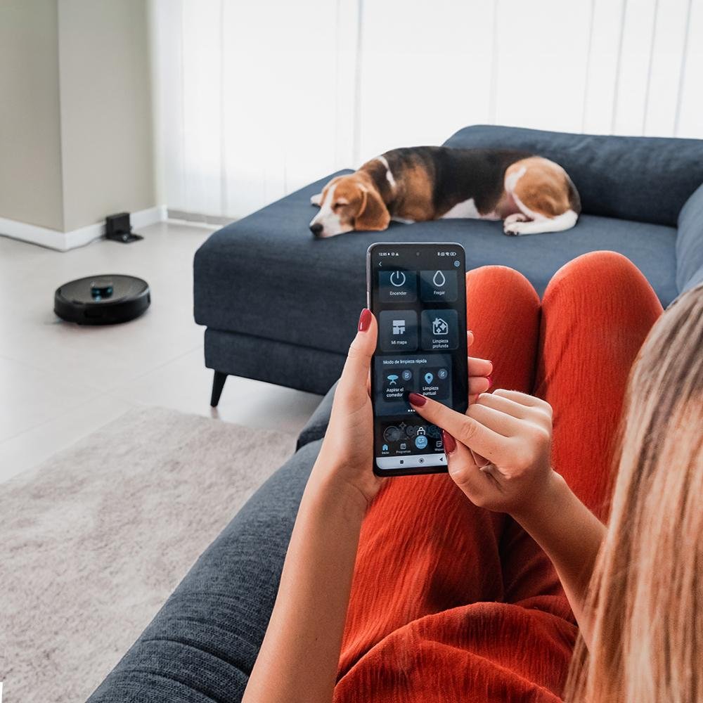 - Inteligencia Artificial. El robot limpia de forma inteligente gracias a su chip IA, que le permite esquivar objetos, incluso pequeños, para evitar riesgos y limpiar con la máxima precisión, incluso ante situaciones de desorden.