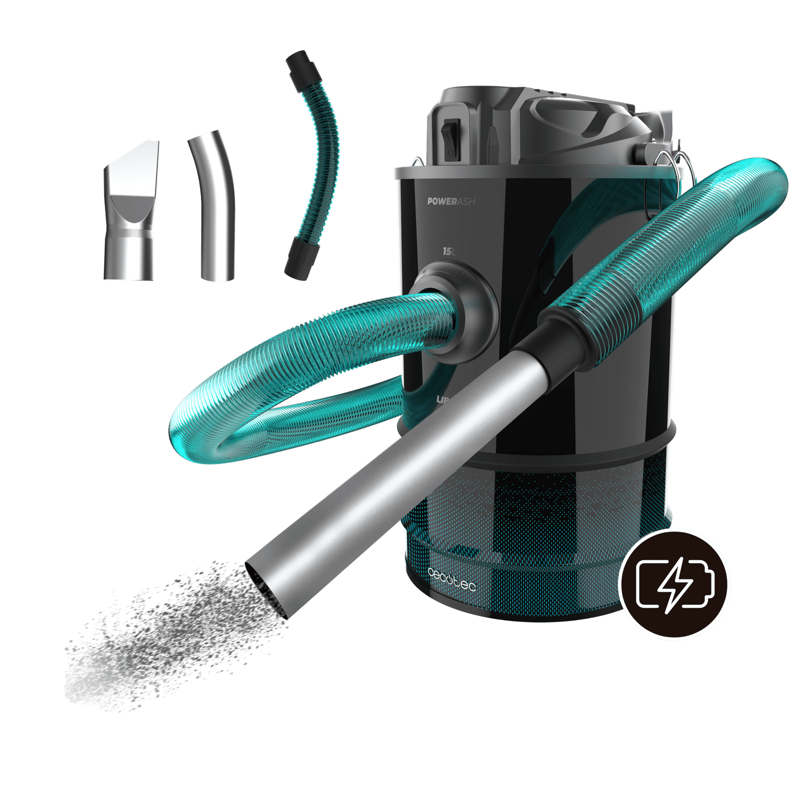 Conga Ash 7000 Liberty Aspirador de cenizas y de pellets Conga Ash 7000 Liberty de 15L, 120 W de potencia gran autonomía gracias a su batería de 18V