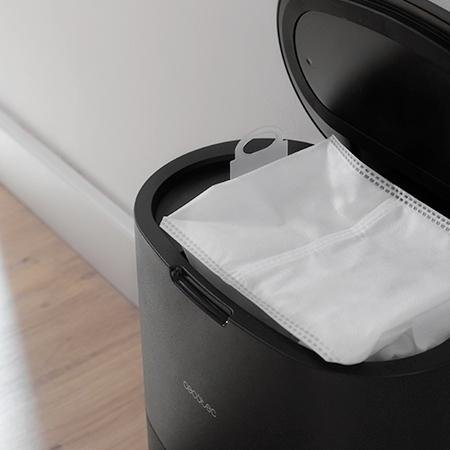 El sistema utiliza para el vaciado bolsas higiénicas con una gran capacidad de 2 l y una autonomía de hasta 8 semanas*. Cómodo y genial para no mancharte ni entrar en contacto con el polvo y la suciedad.