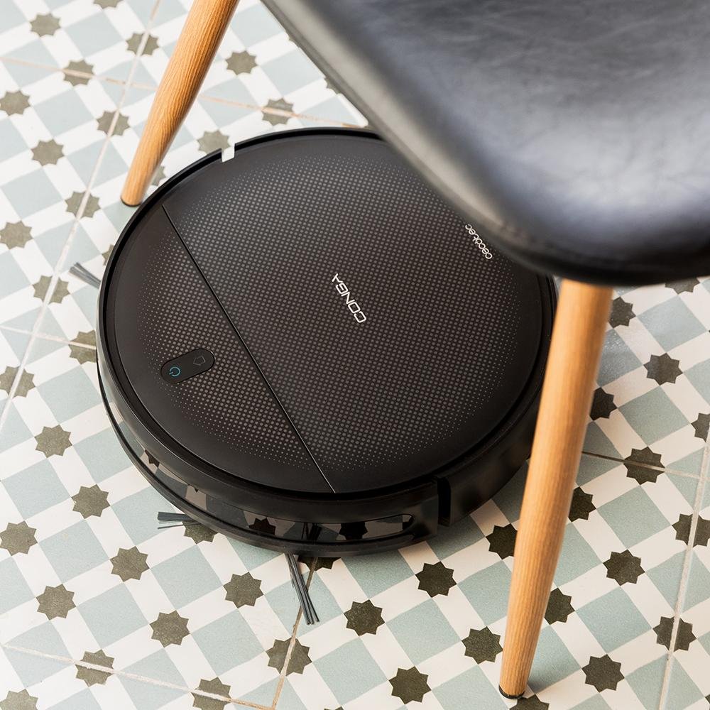 El robot se adapta a tu casa y limpia hasta 120 m² sin parones y de forma ordenada gracias a su navegación gyro con sensores de proximidad, antichoque y anticaída.