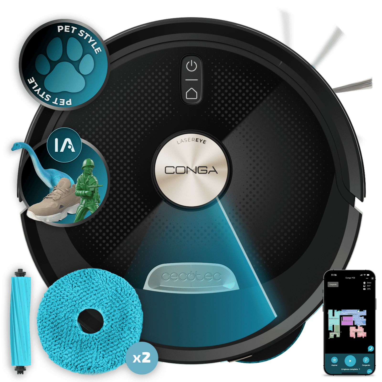 Conga M100 Spin AI Robot aspirador con mopas giratorias elevables. Inteligencia Artificial y 20000 Pa de succión. Cepillo de silicona antienredos. Autonomía hasta 220 m2. Control App 3.0.
