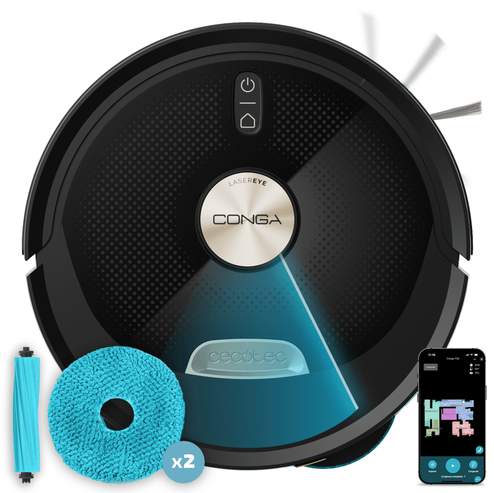 Conga M100 X-Treme Robot aspirador con mopas giratorias elevables. Inteligencia Artificial y 20000 Pa de succión. Cepillo de silicona antienredos. Autonomía hasta 220 m2. Control App 3.0.