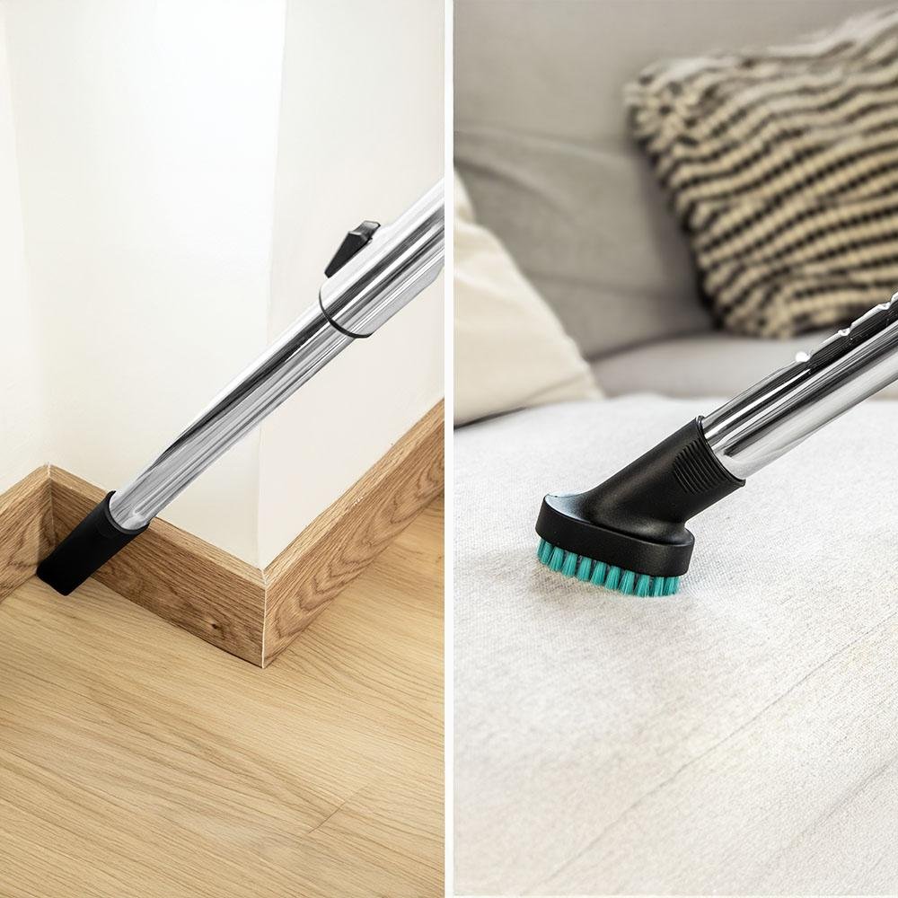 • Aspira muebles y esquinas al detalle. Kit de accesorios: apto para todas las superficies.