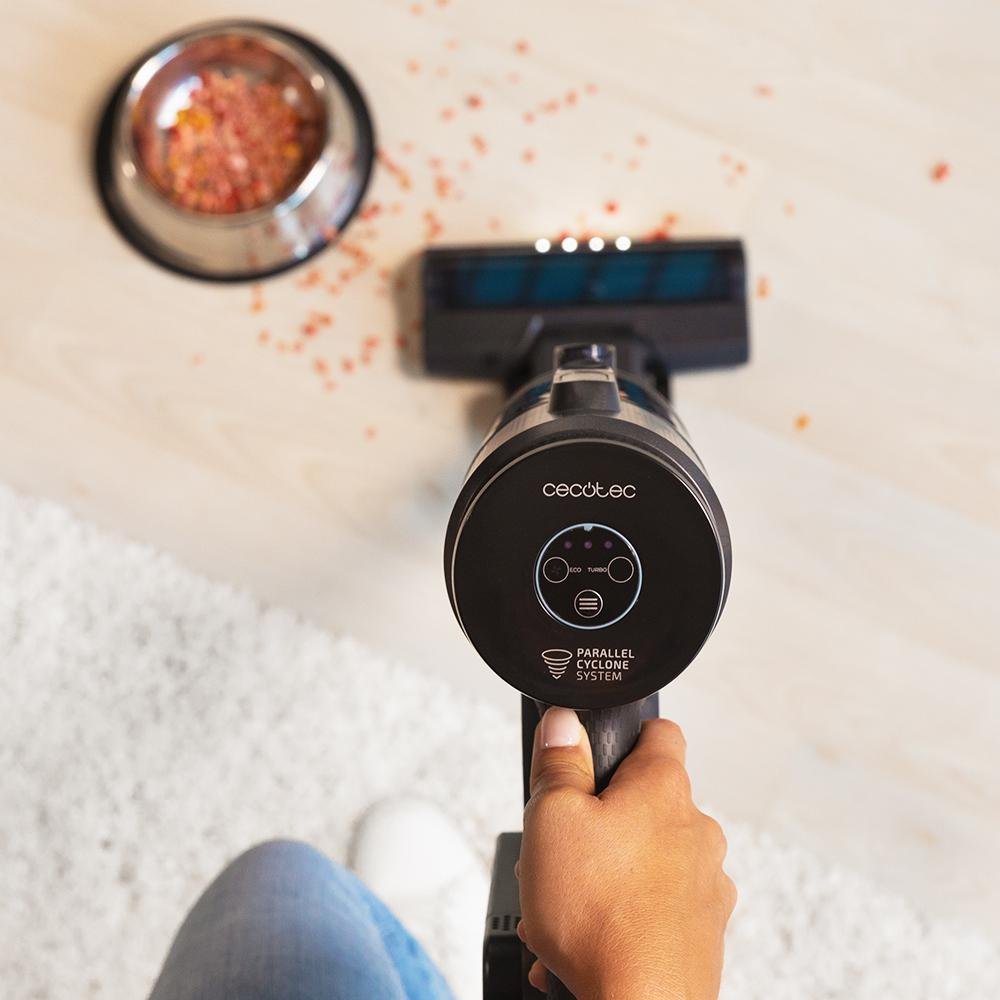 Aspira toda la suciedad sin esfuerzo gracias su ciclón paralelo y a su poder de succión ultrapotente con hasta 12 kPa* y 215 W.*Según pruebas internas de Cecotec.