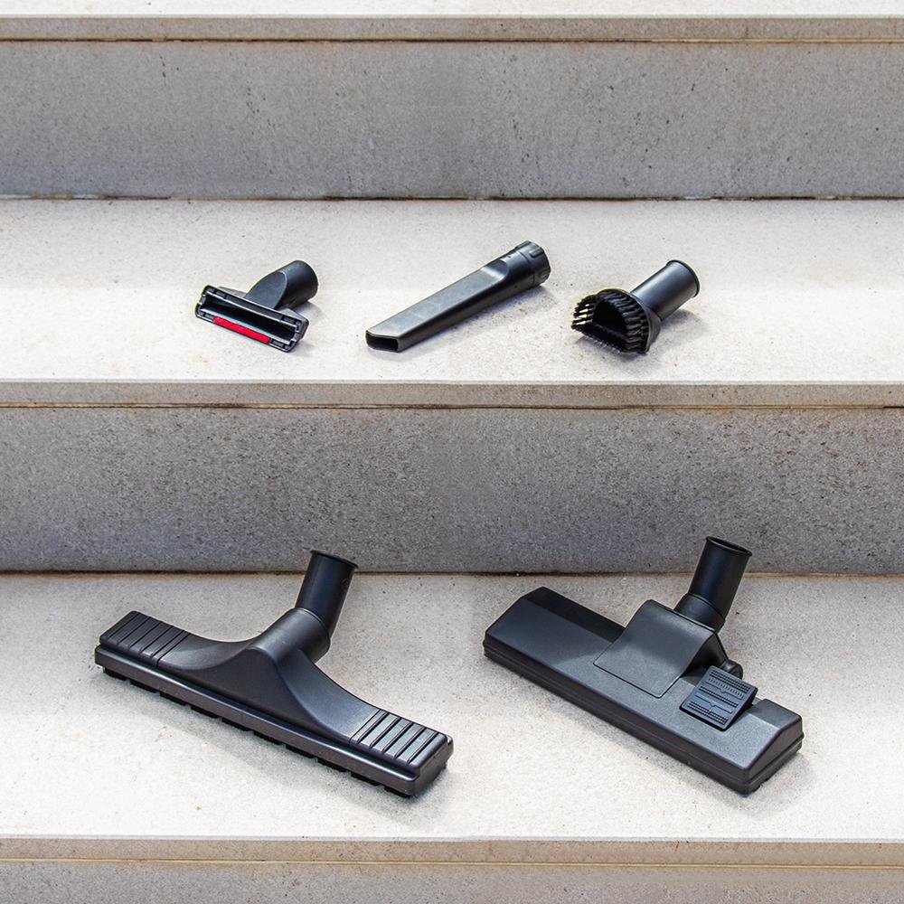 - Incluye una gran variedad de accesorios que permiten una limpieza perfecta en cualquier superficie. Incluye: accesorio para esquinas, accesorio para muebles, accesorio para tejidos, cabezal de suelo para líquidos y cabezal de suelo.