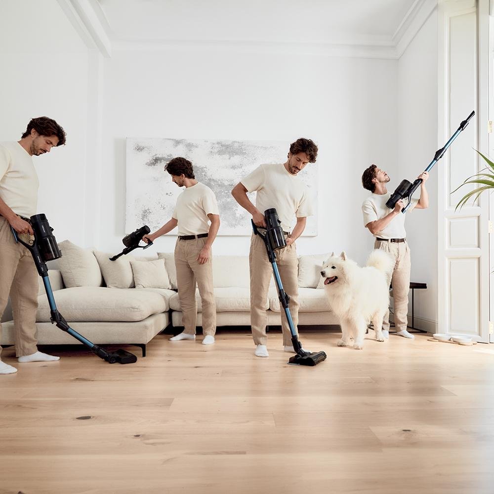 Escoge entre aspiración vertical, de mano, fregado o escoba sin perder ni un vatio de potencia y acaba con la suciedad de la forma más cómoda gracias a su tecnología 360º que aporta una gran libertad de movimiento.