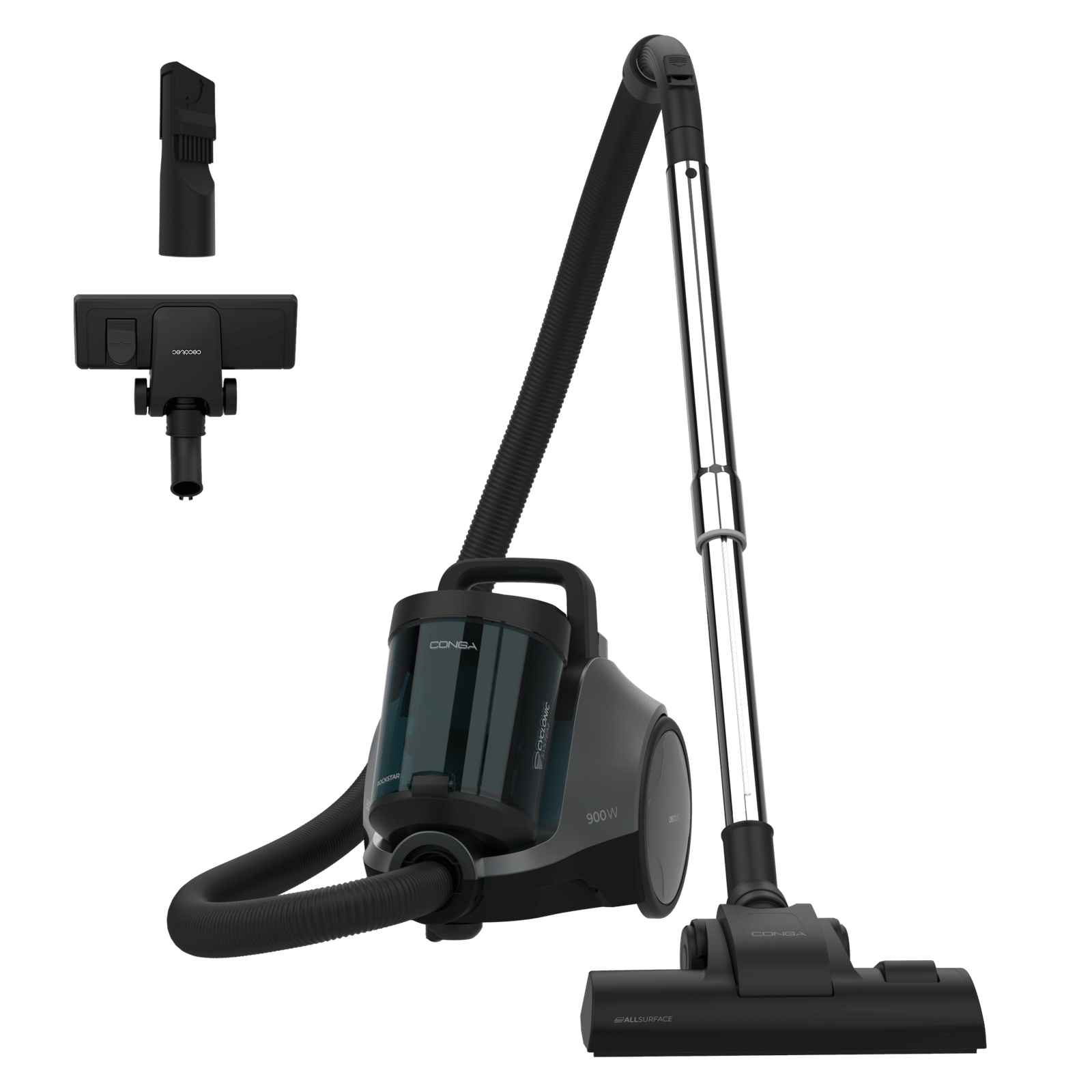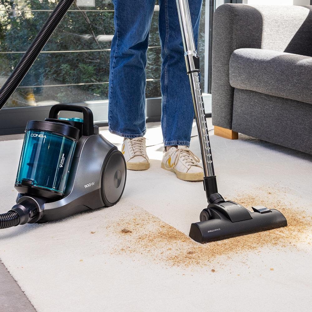Conga Rockstar Cyclonic Pro Aspirador de trineo sin bolsa con 900 W y 19 Kpa de potencia para una limpieza profunda. Incluye Cyclonic System, filtración de alta eficiencia y depósito de 2,5 L.