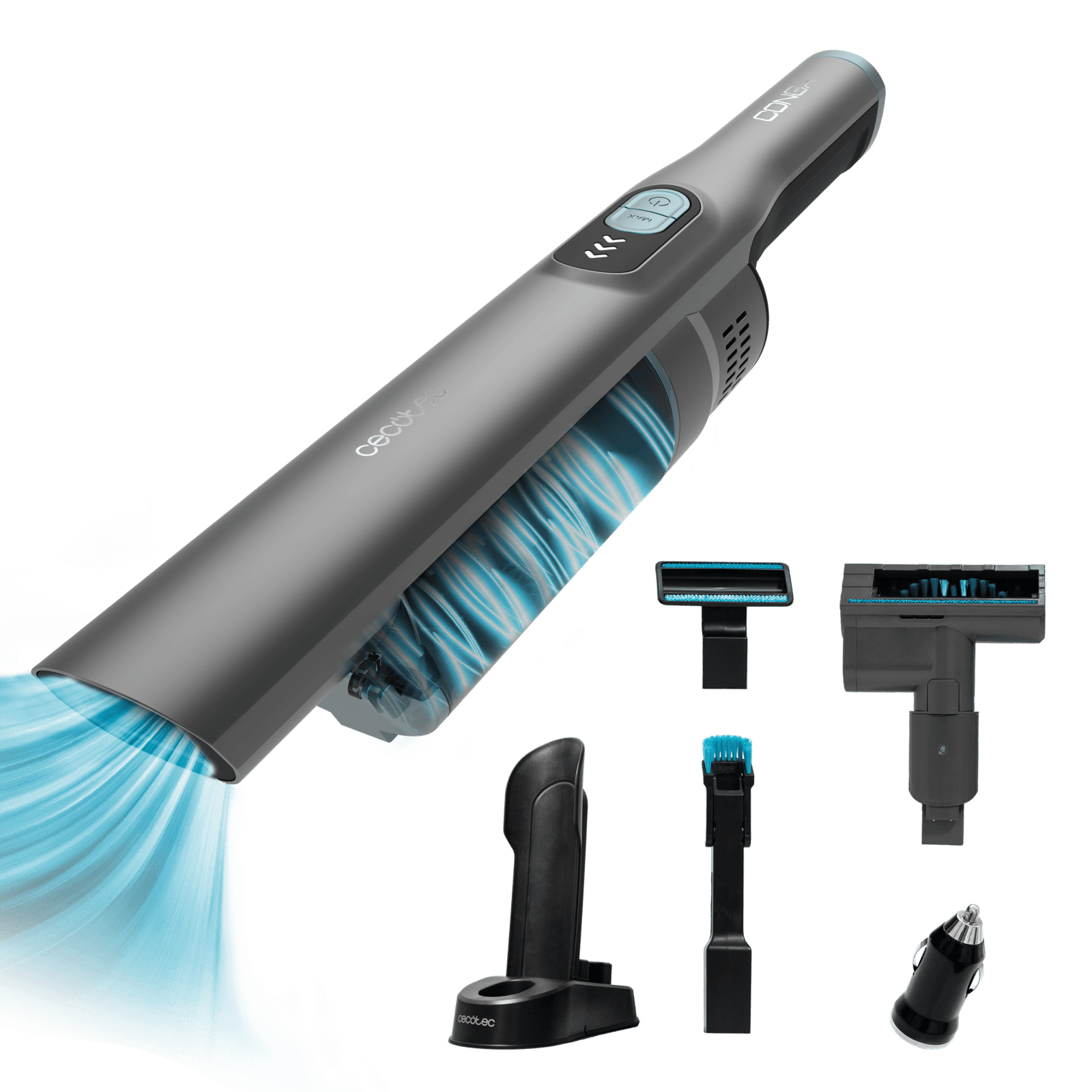 - Cargador de coche: incluye un cargador de coche de 12 V para poder cargar tu aspirador durante largos viajes y así tener tu coche siempre limpio.