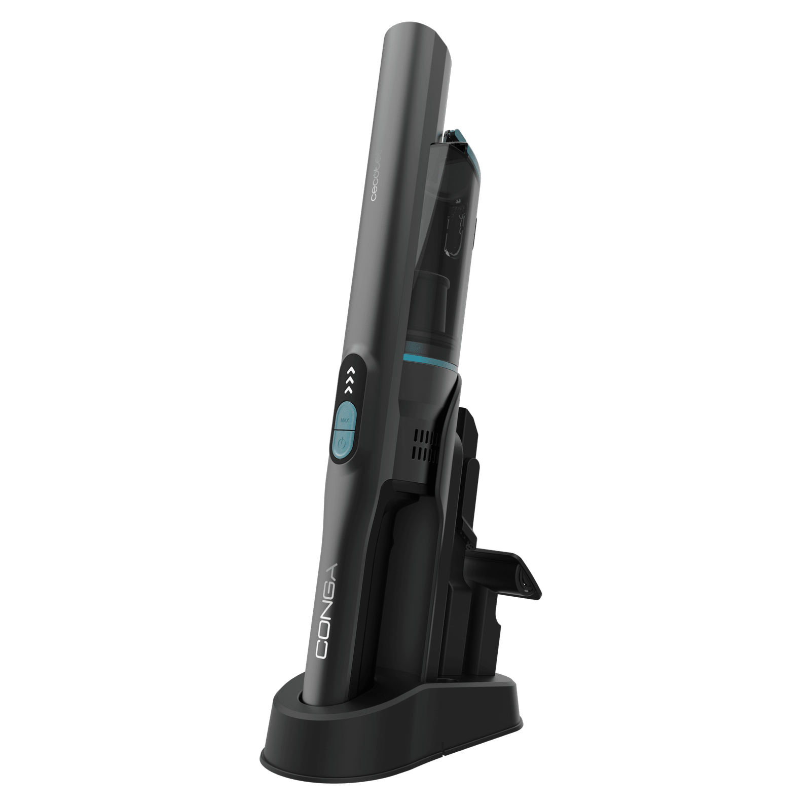 Conga Rockstar Micro+ Clean&Car X-Treme Aspiradora de mano con motor Digital Brushless de 210 W y 20 kPa de poder de succión. Autonomía de hasta 40 minutos. Cargador de coche de 12 V. Dos modos de potencia. Con accesorio 2 en 1, accesorio de tapicerías, accesorio motorizado de tapicerías y colchones y el soporte de pared.