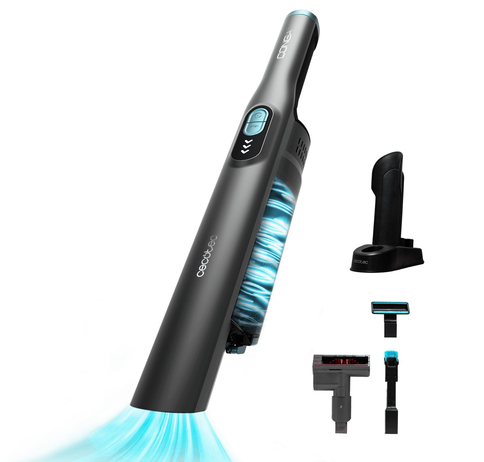 Conga Rockstar Micro+ Turbo Aspiradora de mano con motor Digital Brushless de 210 W y 20 kPa de poder de succión. Autonomía de hasta 40 minutos. Dos modos de potencia. Con accesorio 2en1, con accesorio de tapicerías, el accesorio motorizado de tapicerías y colchones y el soporte de pared.