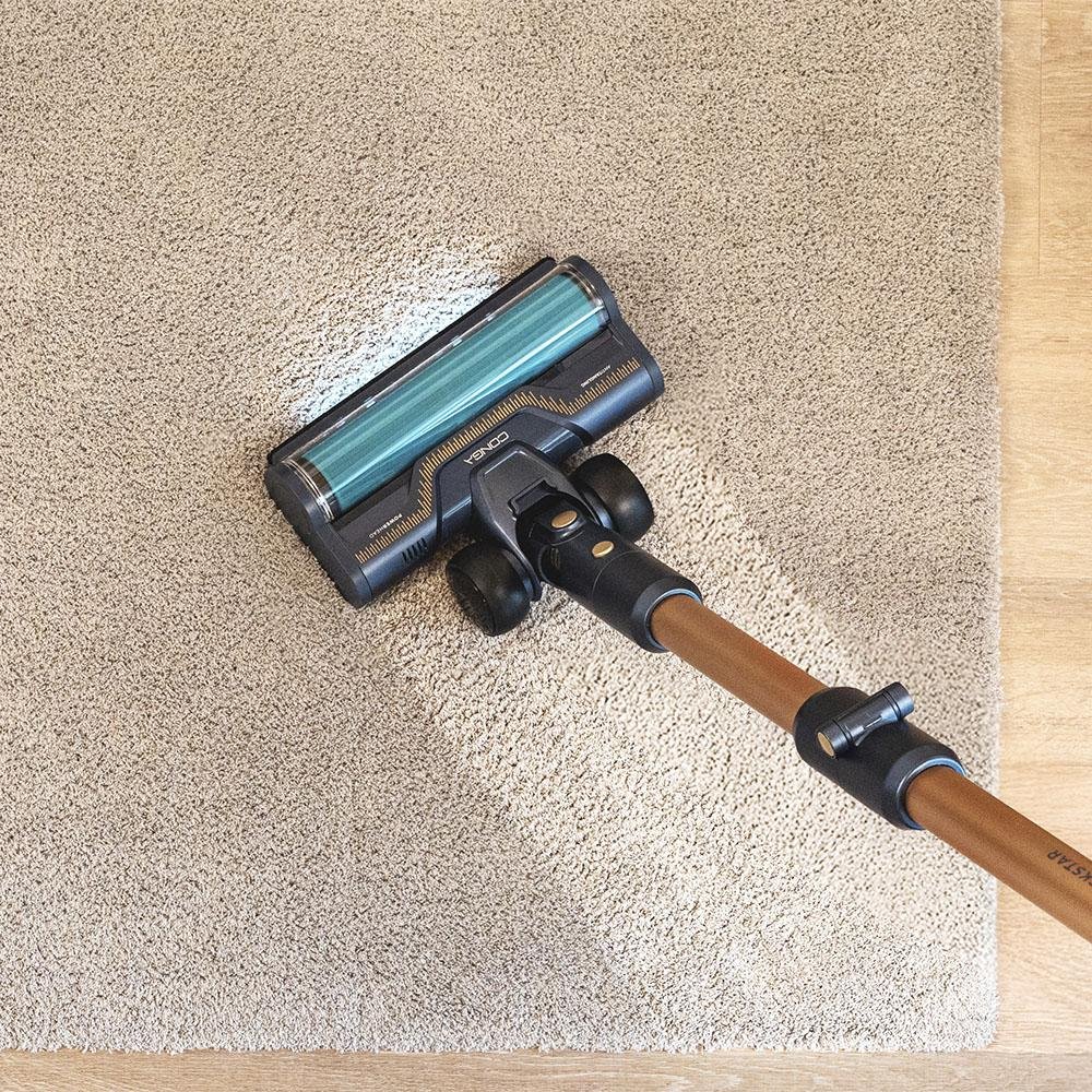 - Aspira más en menos tiempo* y sin enredos. Cepillo HairLess XL: cubre más área en cada pasada, atrapando todo tipo de suciedad y evitando enredos gracias a su diseño en forma de «V» que elimina los pelos y reduce la limpieza manual del cepillo. Además, el diseño dentado del interior del pie de aspiración permite cortar los pelos enredados, evitando atascos y manteniendo el cepillo limpio por más tiempo. *Doble de área de aspirado respecto a Rockstar 1500.