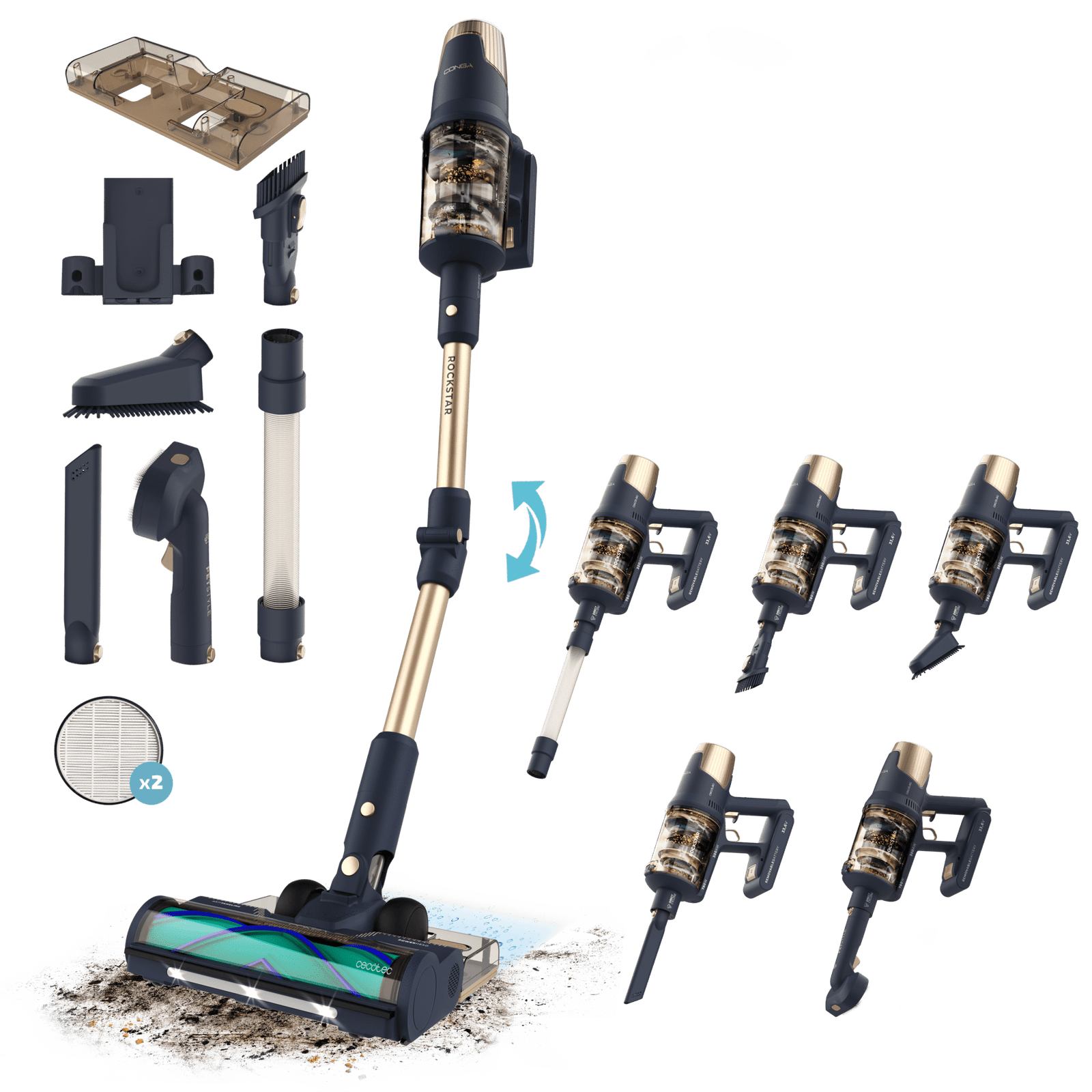 Conga Rockstar RX70 AquaPet Flex X-Treme Aspirador vertical con Máxima potencia de succión de 300 AW y ultrapotencia de 780 W. 100 minutos de autonomía. Cepillo HairLess antienredos. Tubo flexible y kit de accesorios completo. Incluye cepillo para animales y accesorio de fregado.