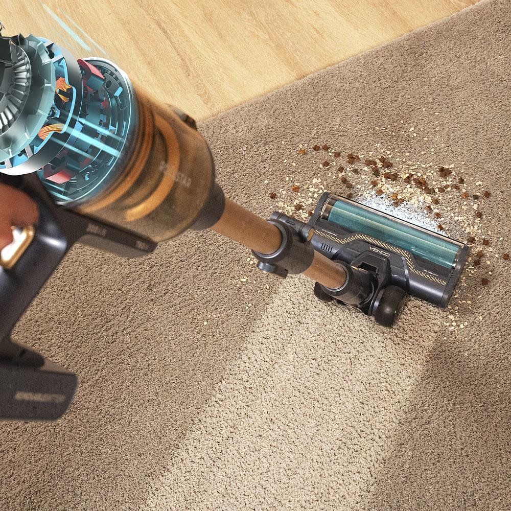 - Aspira en profundidad, incluso alfombras altas. Presión de succión de 30 kPa: atrapa hasta lo que no ves en superficies complicadas como alfombras altas.