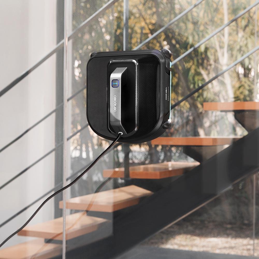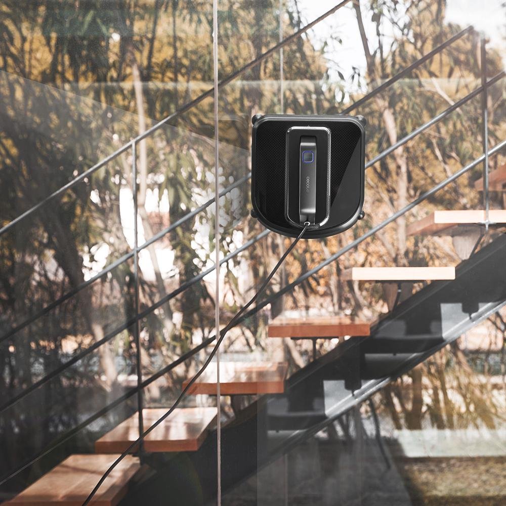 • Robot limpiacristales inteligente con diseño cuadrado y mopa vibratoria, llegando a todas las esquinas.
