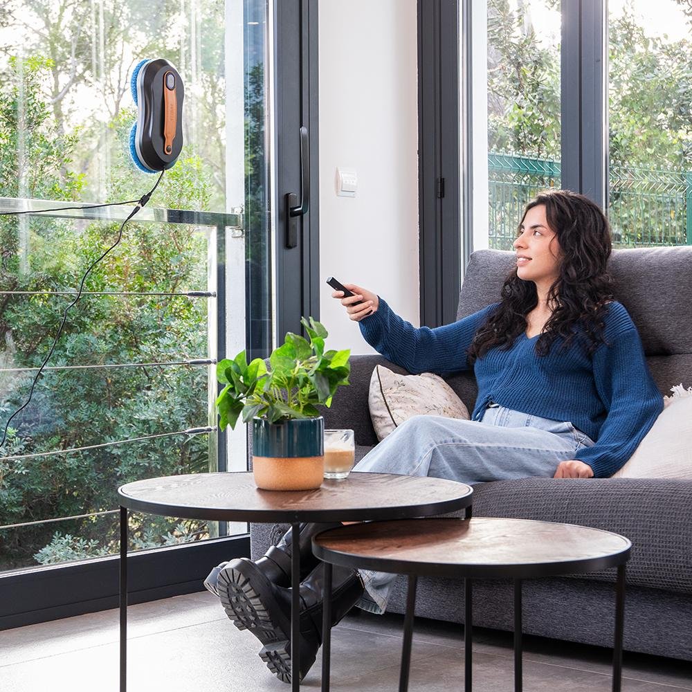 • Limpia hasta el último rincón. Radio de acción de 7,5 m que permite al robot limpiar grandes ventanales.