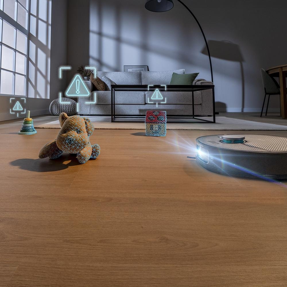 Con su Inteligencia Artificial y LaserEye navega con precisión incluso en entornos desordenados. Identifica objetos pequeños, suelos y suciedad. Conga toma las decisiones adecuadas para que tú no te preocupes por nada.