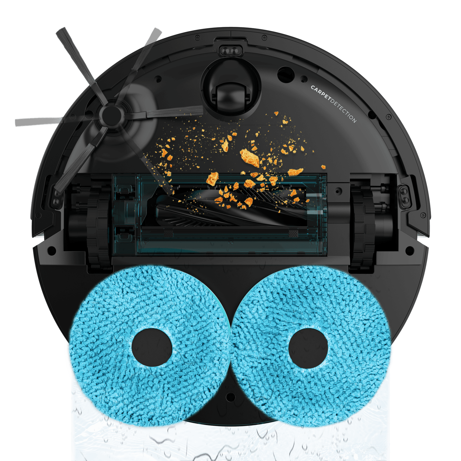 Cuida y limpia tus alfombras en profundidad. Gracias a sus sensores de detección ultrasónica eleva las mopas para protegerlas de la humedad y centrarse en aspirar a máxima potencia.