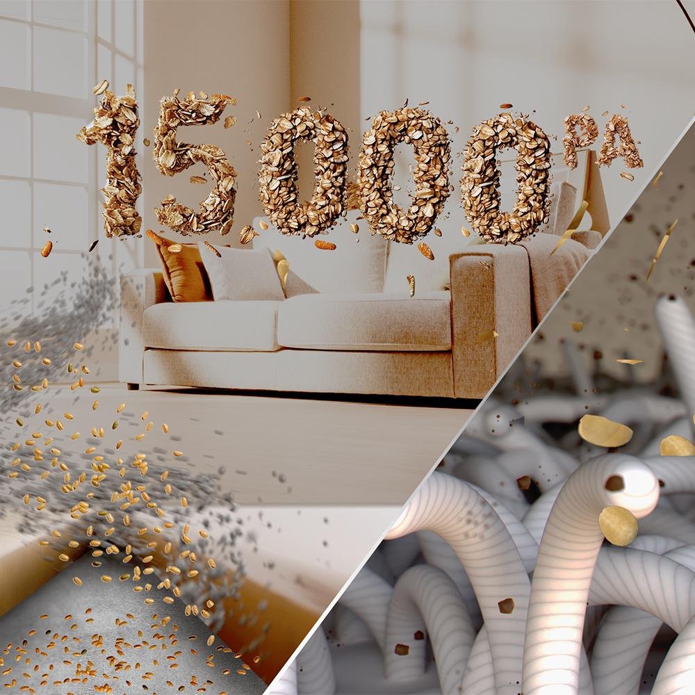 - Ultra Potencia 15000 Pa. Potencia de 15000 Pa gracias a su motor Ungravity. Gran poder de succión para limpiar incluso la suciedad más escondida en alfombras altas o en juntas profundas entre baldosas.