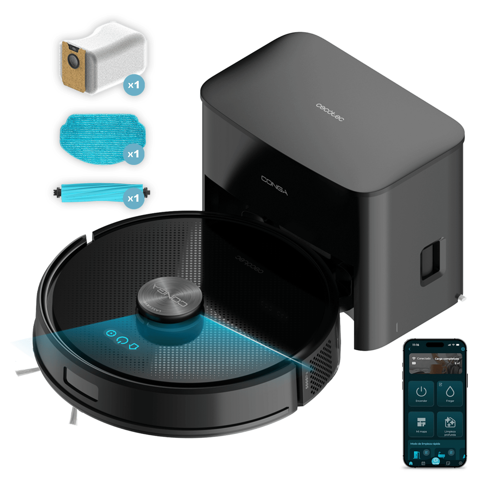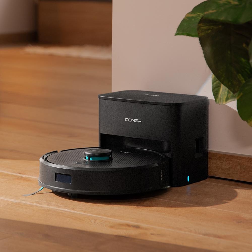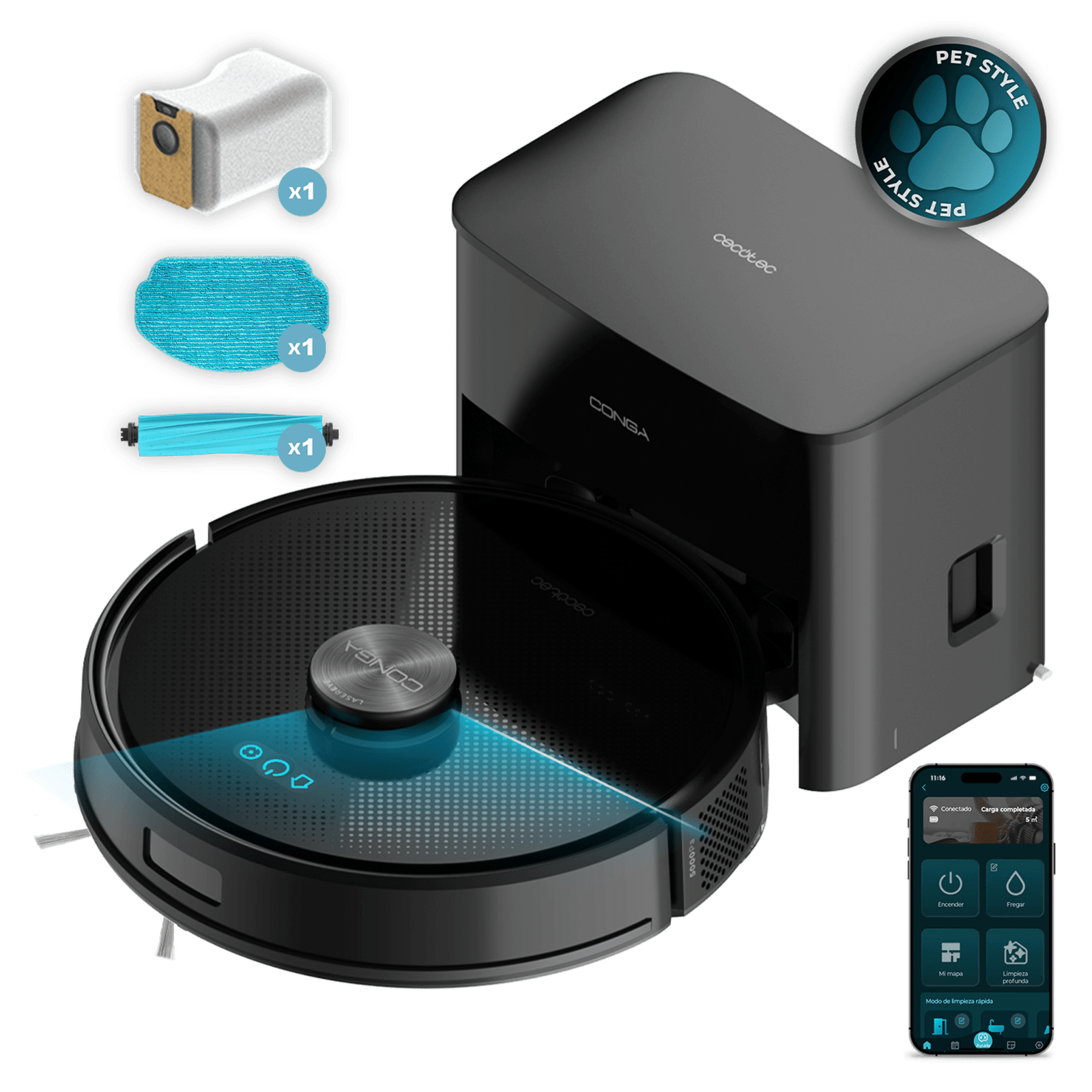 Conga Y70 Robot aspirador con Navegación láser APP y Wifi. 20000 Pa de presión de succión, 180m2 de autonomía. Cepillo de silicona especial para casas con mascotas. Base de autovaciado con bolsa de polvo de 3 L.