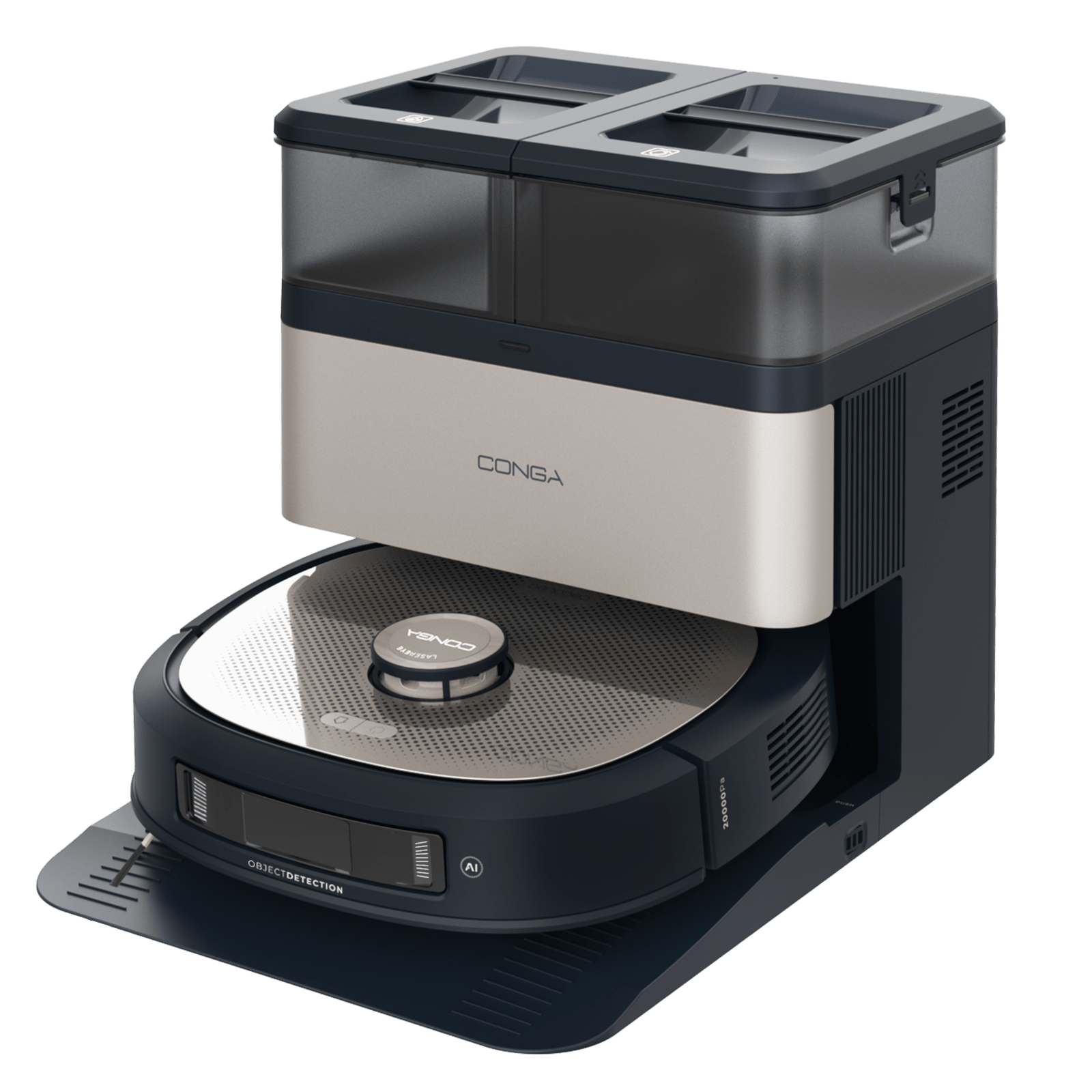• AI con LaserEye. Con su Inteligencia Artificial y LaserEye navega con precisión incluso en entornos desordenados. Identifica objetos pequeños, suelos y suciedad. Conga toma las decisiones adecuadas para que tú no te preocupes por nada.