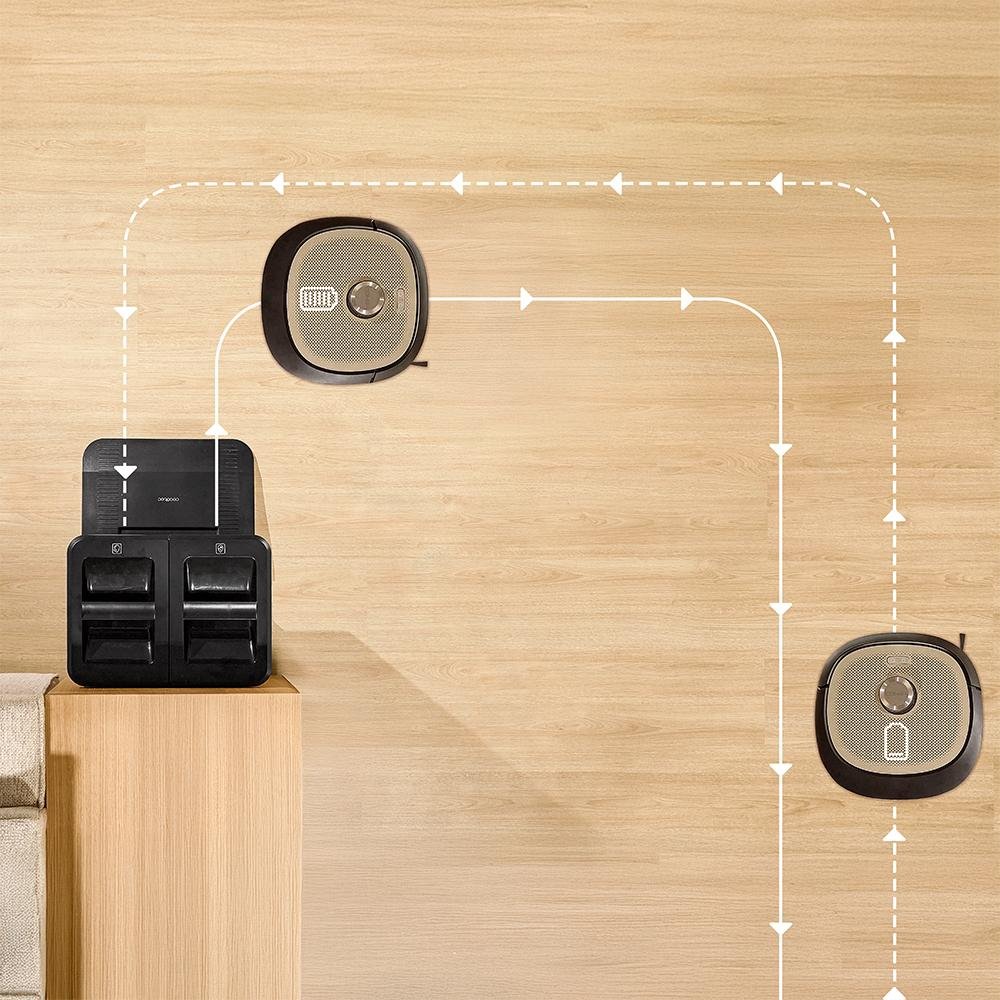 • Estación All-in Home con secado rápido: Mantenimiento completo para una limpieza impecable. La estación, escurre el agua sucia, lava la mopa y la seca con aire caliente. Además, olvídate del polvo y las alergias gracias a su sistema de autovaciado que vacía la bolsa higiénica automáticamente hasta por 12 semanas*. *El tiempo puede variar según las condiciones ambientales y hábitos de uso. 3 L de la bolsa de polvo, 3 L del tanque de agua limpia y 3 L del tanque de agua sucia.