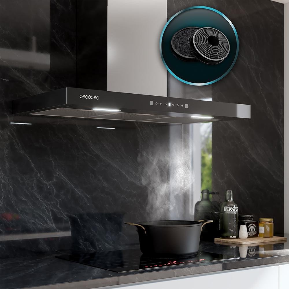 Sus dos filtros de carbono de Ø176 son ideales para complementar el potente motor de la campana, eliminando por completo los malos olores y el humo.