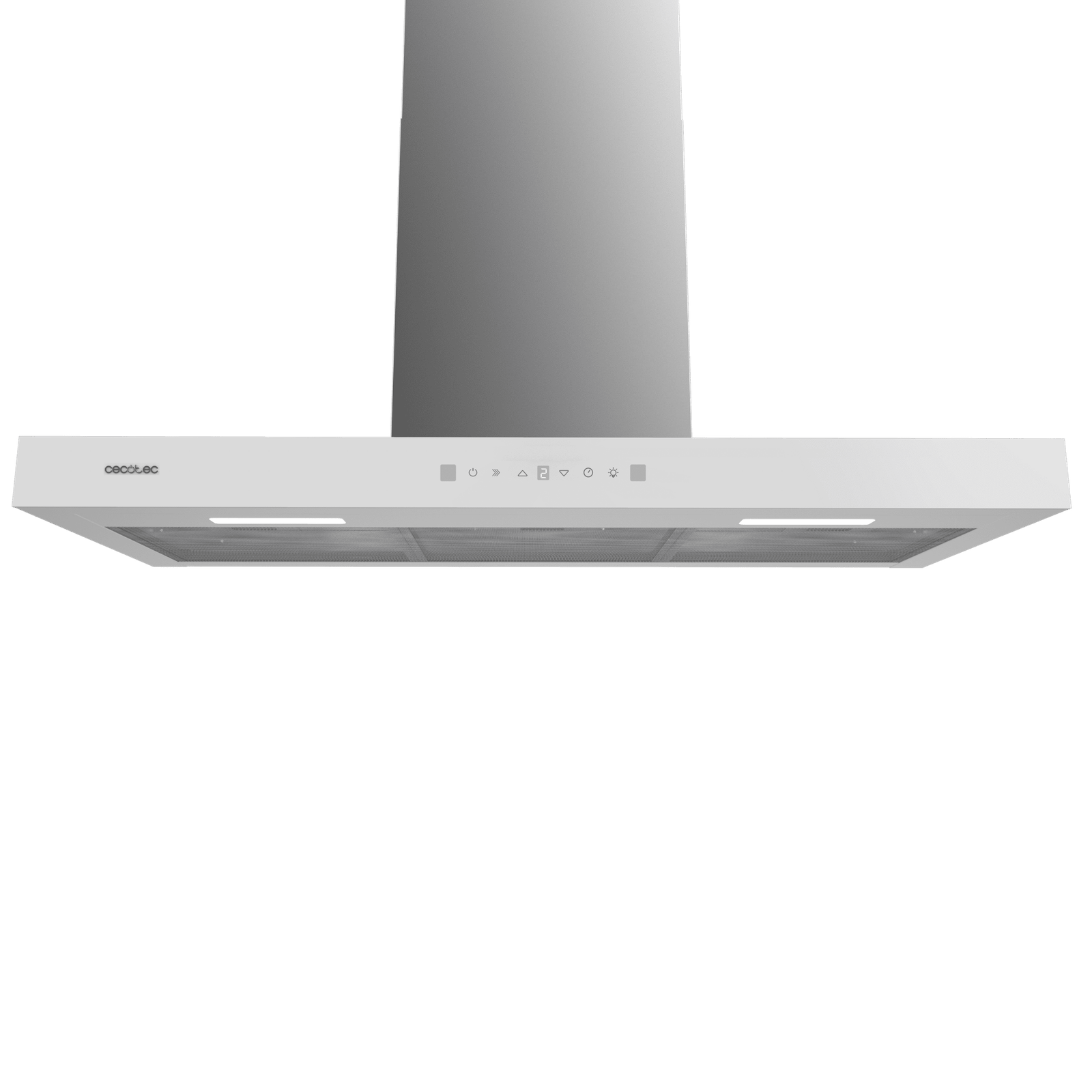 - Acabado frontal de cristal blanco: campana extractora con acabados frontales de cristal blanco, para un diseño estilizado y elegante.