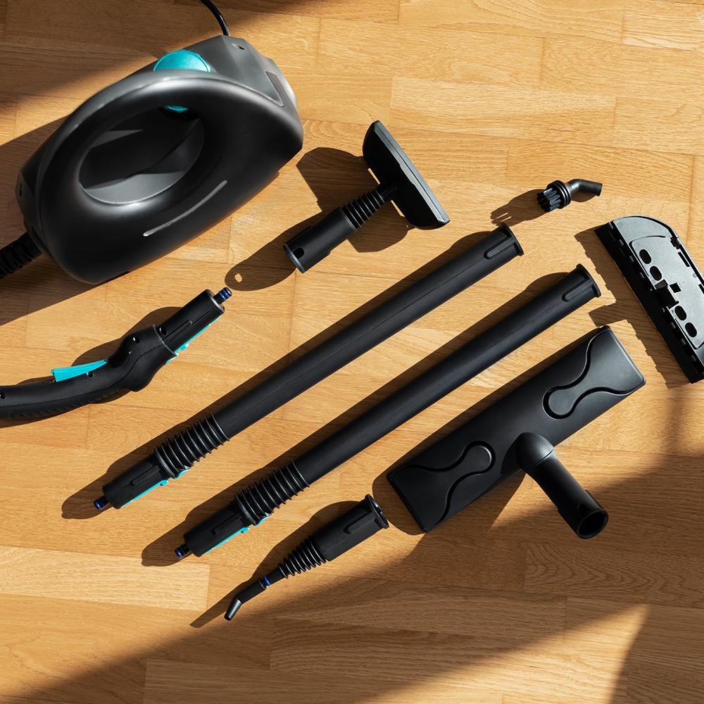 Potencia máxima de hasta 2000 W para una limpieza y desinfección perfecta. Depósito de 750 ml. Con 4 bares de presión y 35 g/min de caudal de vapor. Radio de acción hasta 6 metros. Incluye 12 accesorios.