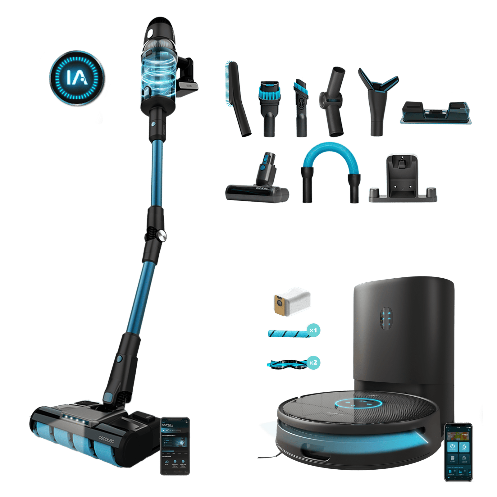 Robot aspirador láser y friegasuelos con base de autovaciado + Aspirador escoba