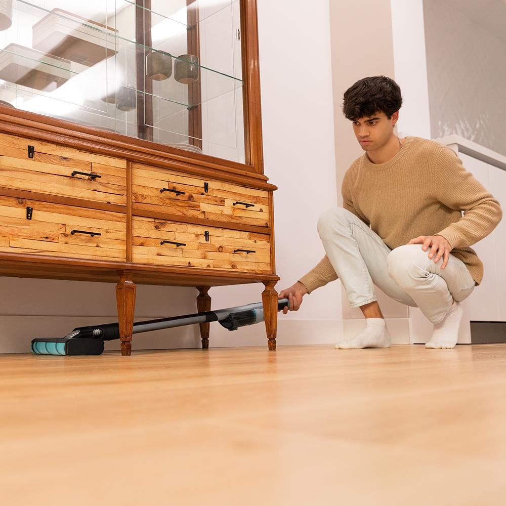 Adapta su funcionamiento con sus dos modos: el Eco alarga la batería al máximo con resultados impecables y el modo Turbo acaba con la suciedad más difícil sin esfuerzo.
