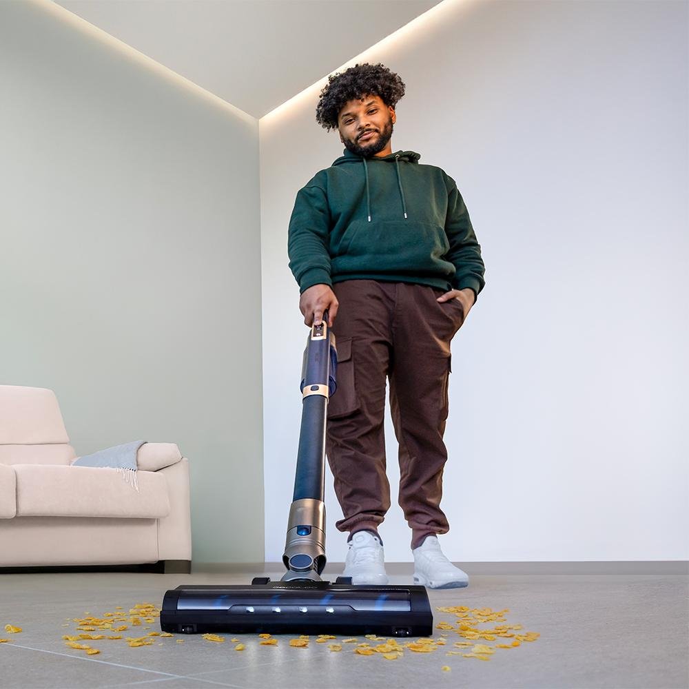 - Alto rendimiento sin pérdidas de potencia. Motor Brushless de 210 W: permite aspirar en profundidad con la misma eficacia de principio a fin.