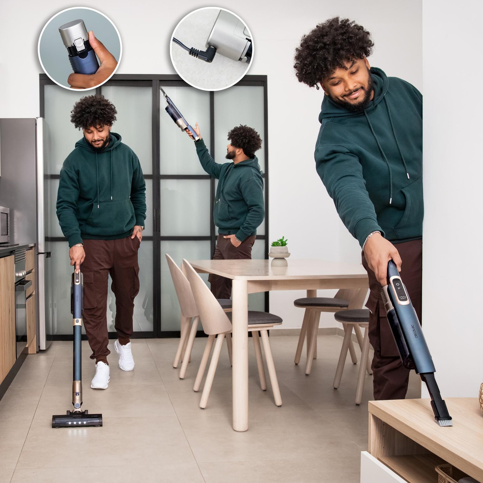 Limpia toda tu casa sin interrupciones o aspira varias zonas puntuales sin preocuparte por la batería. Sus 40 minutos de autonomía ofrecen una versatilidad superior.