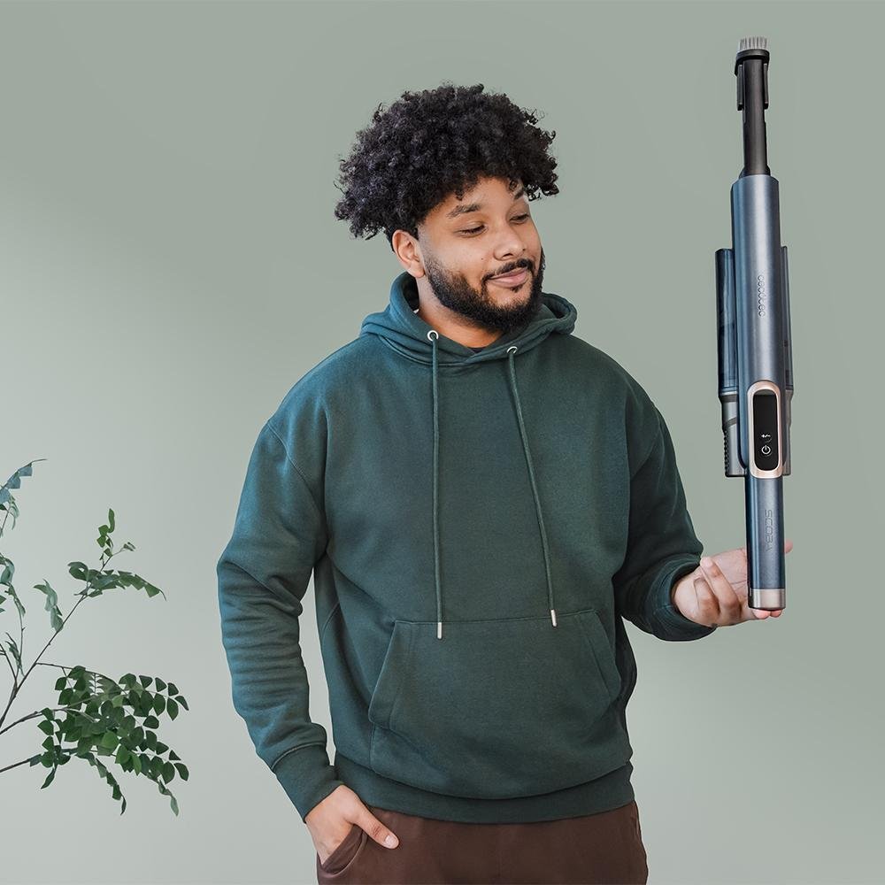 Aspira de forma detallada con Scoba como aspirador de mano y elimina la suciedad de manera rápida en esquinas, muebles y tapicerías.